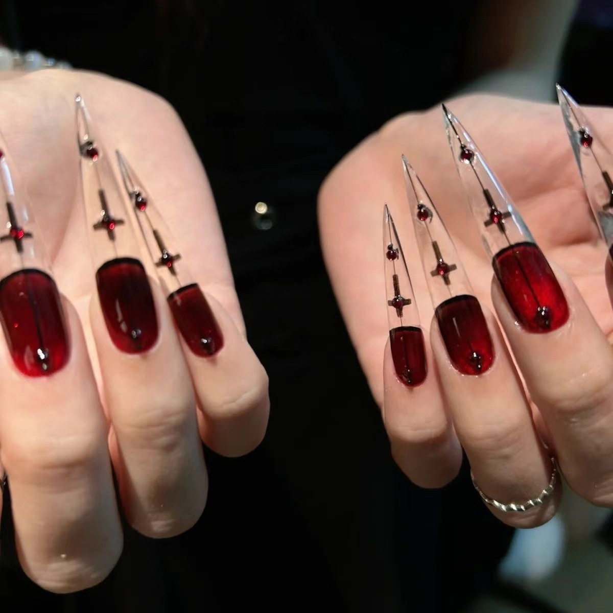 纯手工穿戴甲血色圣痕暗黑朋克血红猫眼欧美风高级感轻奢美甲贴片