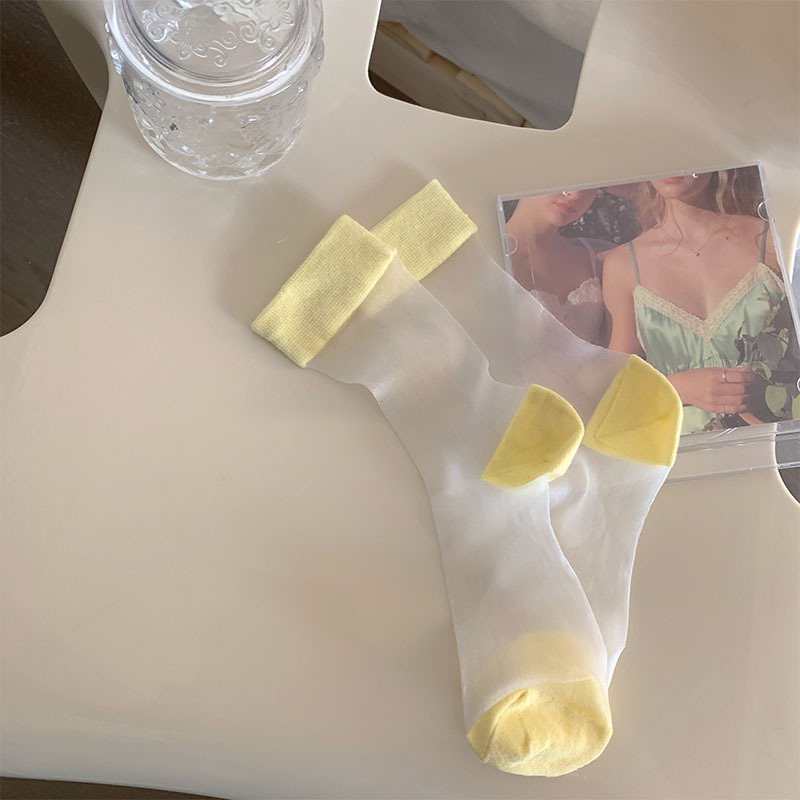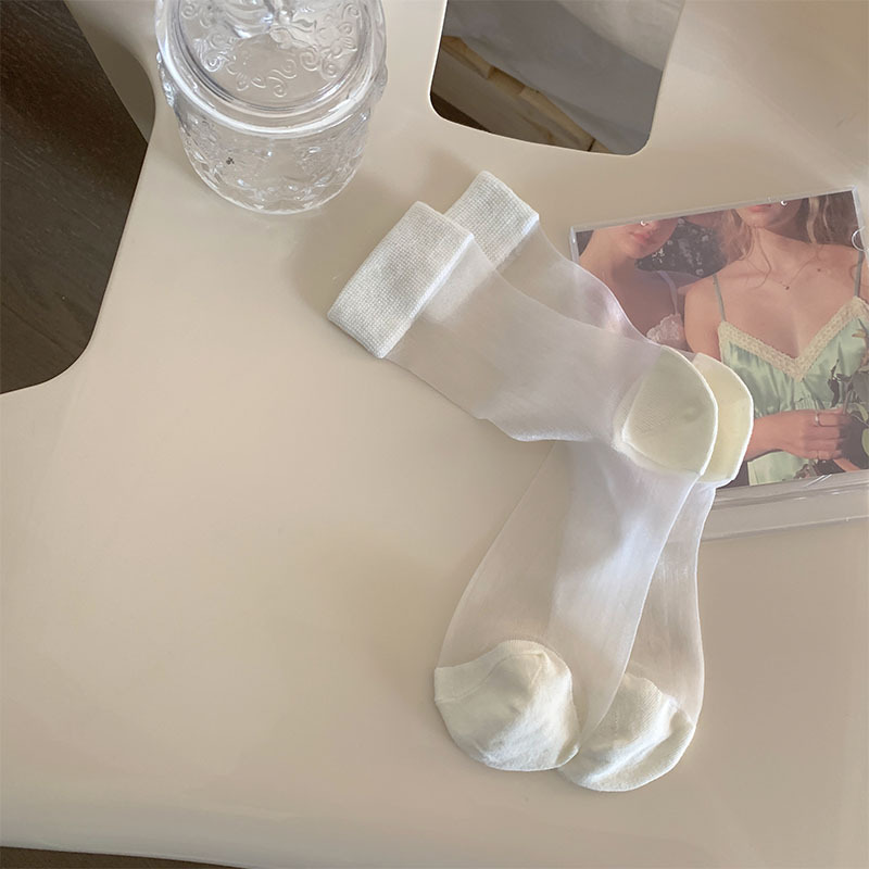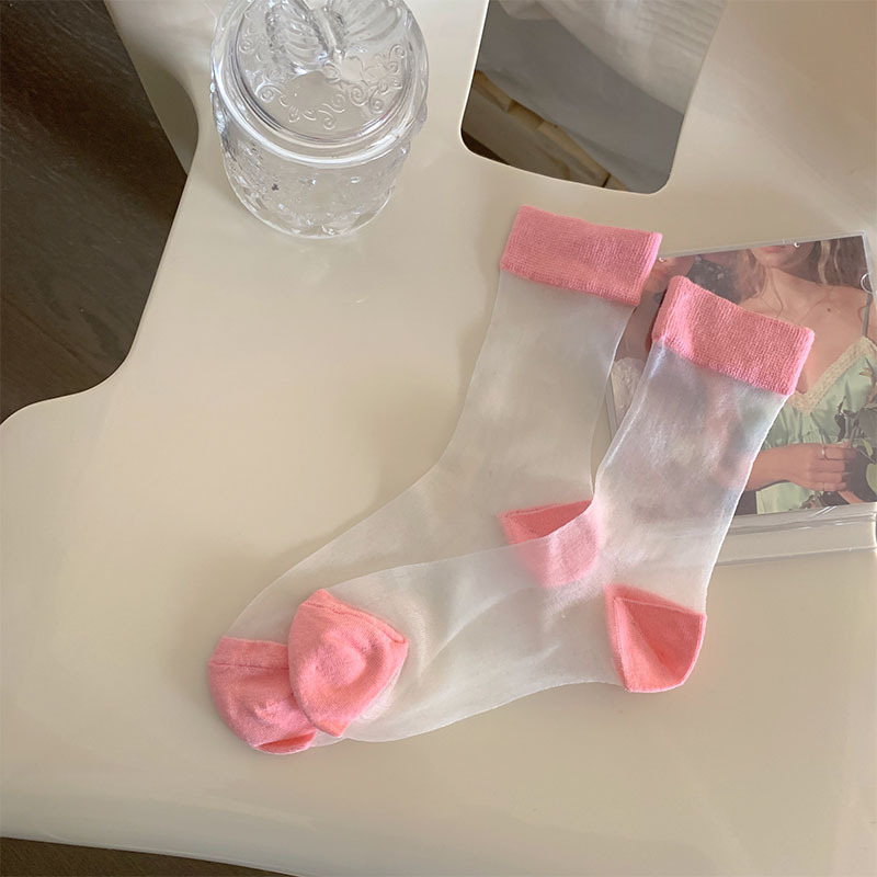 玻璃丝袜子女夏季超薄款透明水晶中筒袜潮日系少女简约纯色卡丝袜