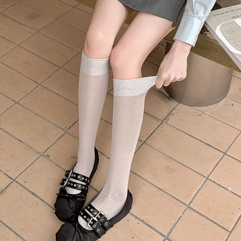小腿袜女夏季薄款网眼透气纯欲风及膝堆堆袜日系纯色性感jk长筒袜