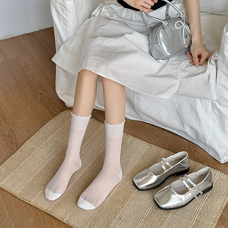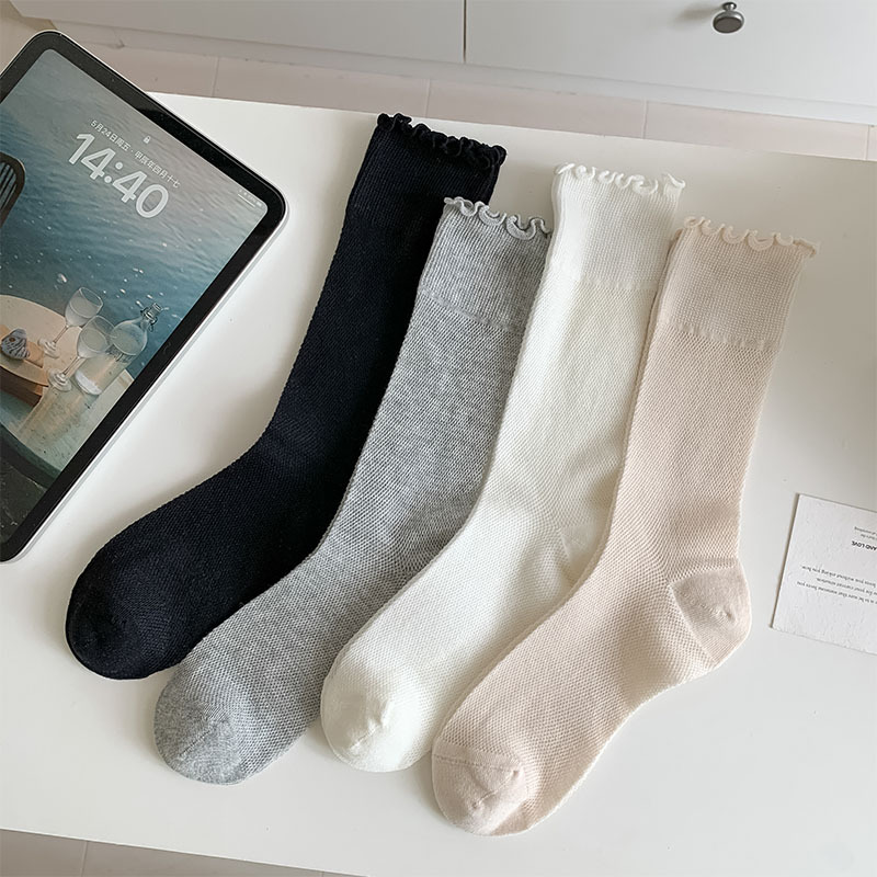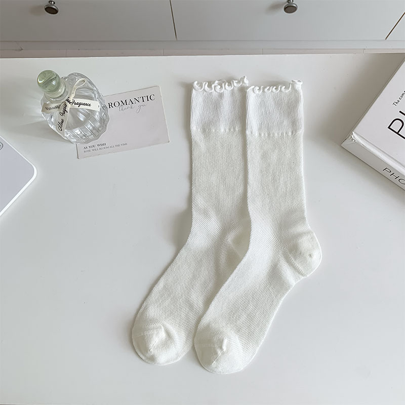 木耳边袜子女夏季薄款镂空网眼透气堆堆袜日系纯色简约百搭jk长袜