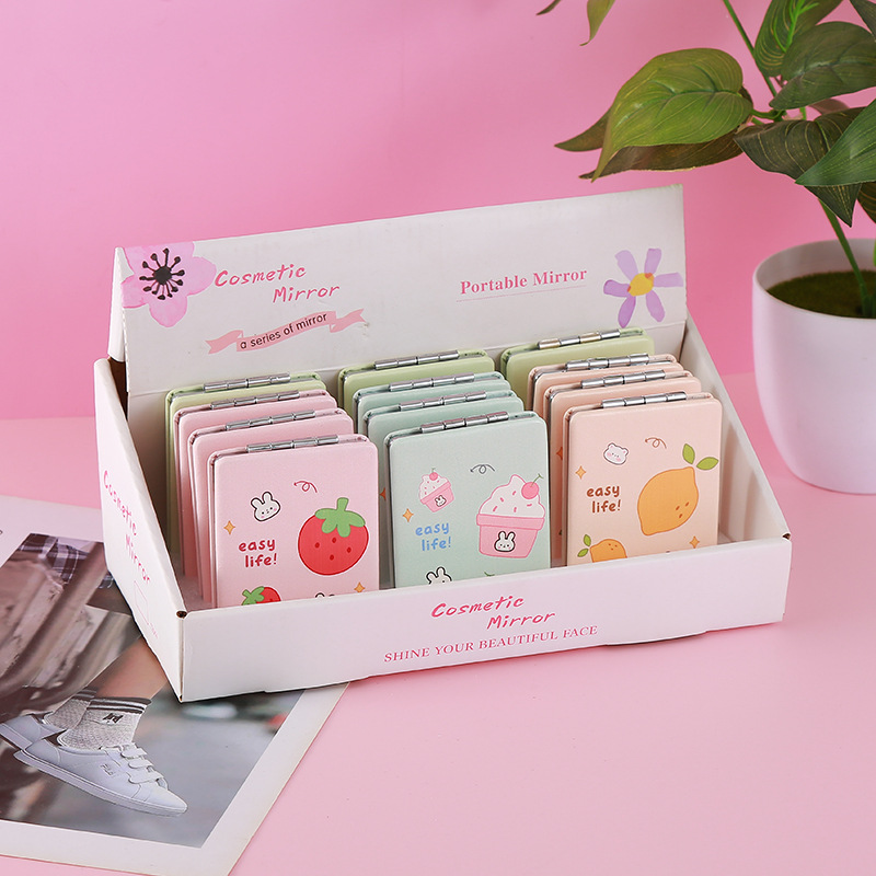新款水果系列长方形折叠镜化妆镜便携式学生手持镜补妆镜双面PU材