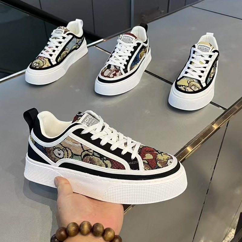 男鞋夏季新款透气印花帆布鞋男款潮流百搭鞋子男运动休闲板鞋