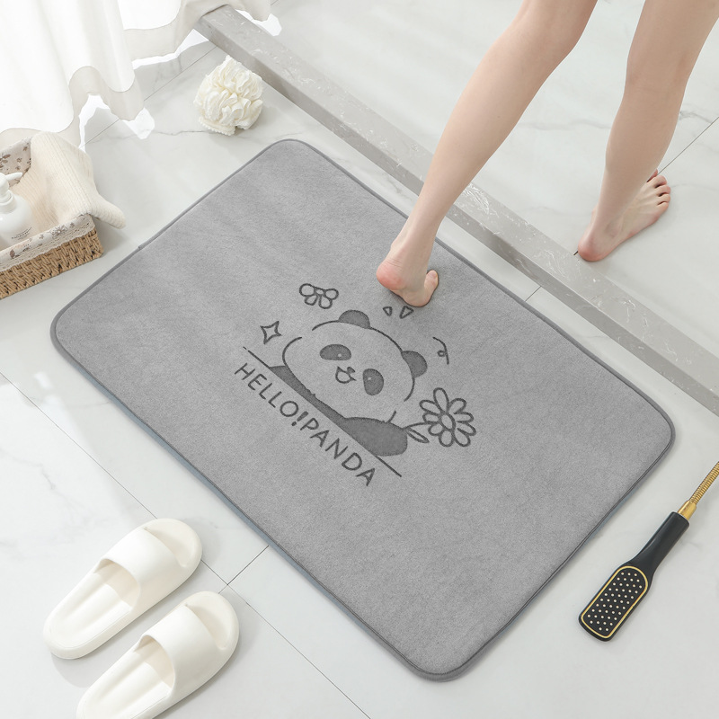 熊猫印花浴室门口吸水脚踏垫灰色防滑地垫卫生间门口脚垫