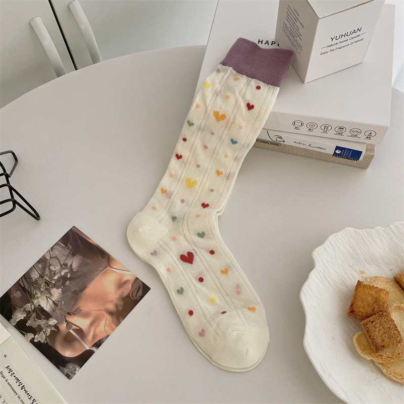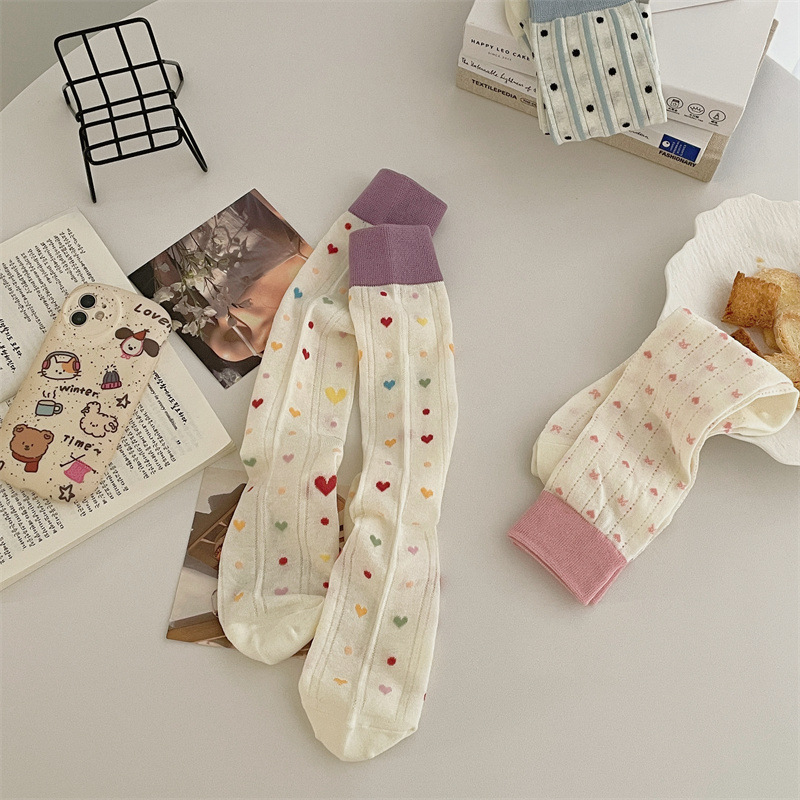 韩国东大门ins款爱心洛丽塔小腿堆堆袜 夏季透气薄款波点袜子女