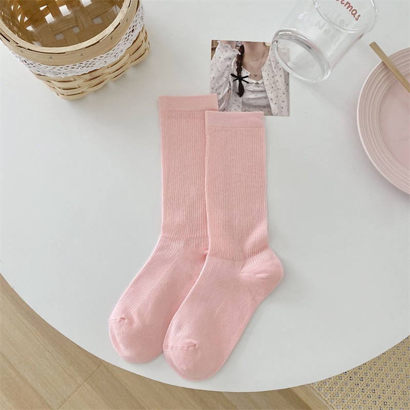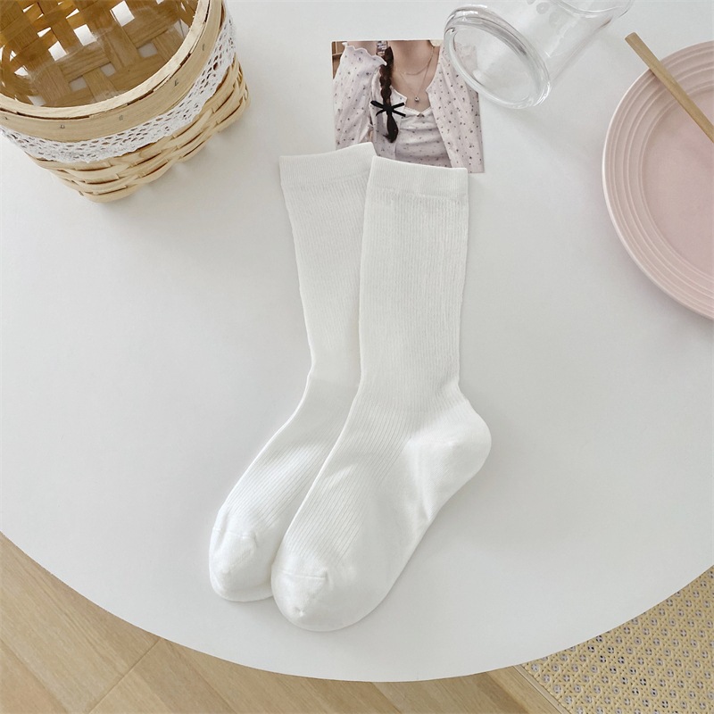 粗针颜值高筒女士春秋季堆堆袜潮白色长筒女袜子纯色