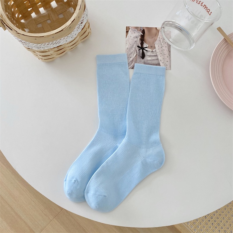 韩国月子袜春夏薄款纯色ins堆堆袜子女镂空奶油色色卡丝中筒袜棉