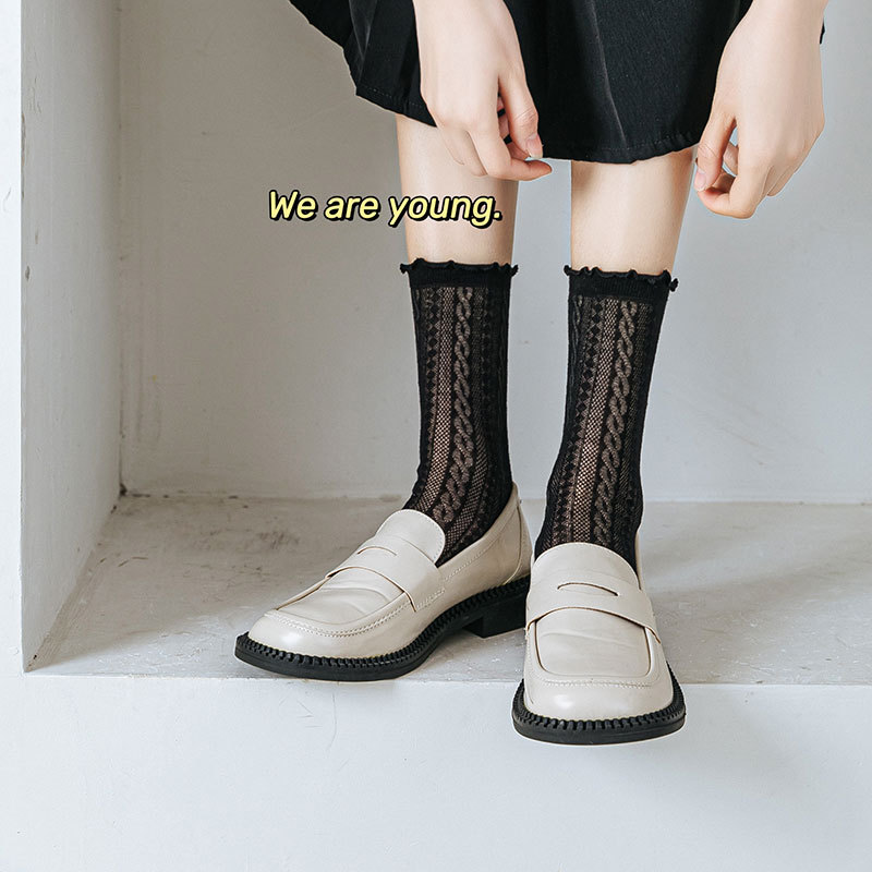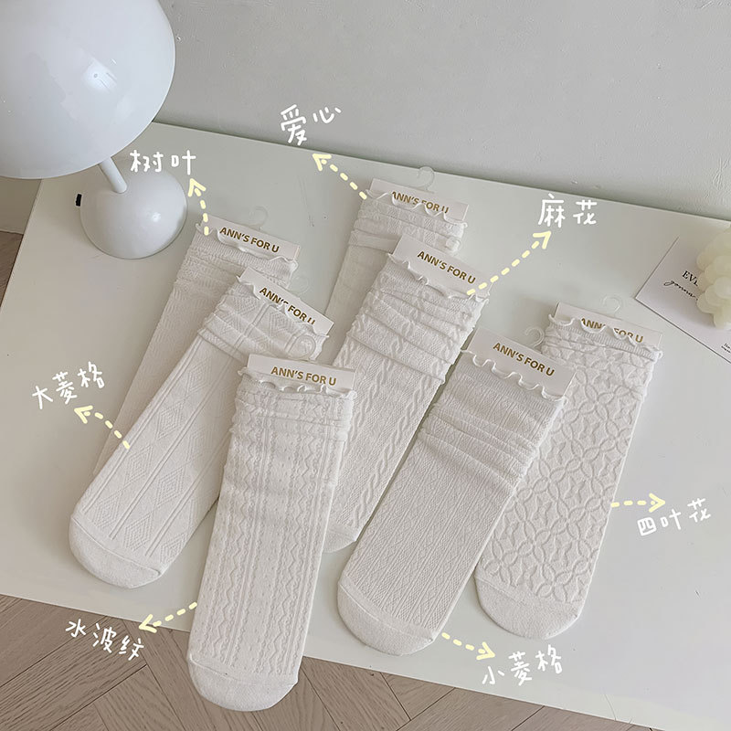 白袜子女日系jk袜中筒袜白色花边袜春秋季堆堆袜黑袜子木耳边袜