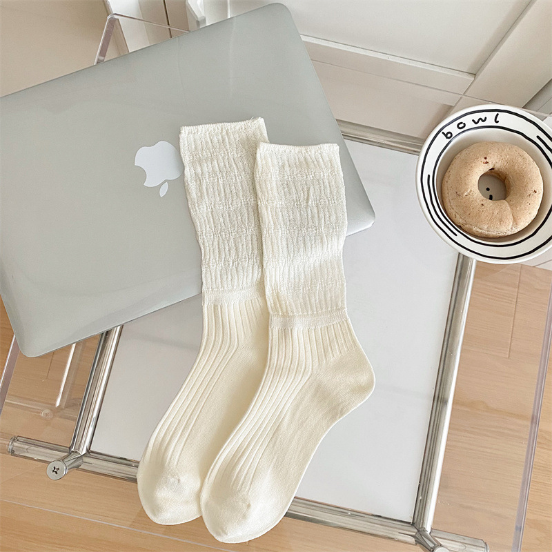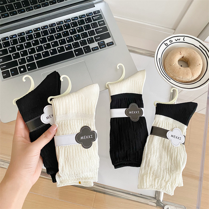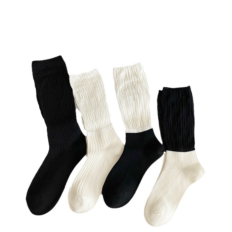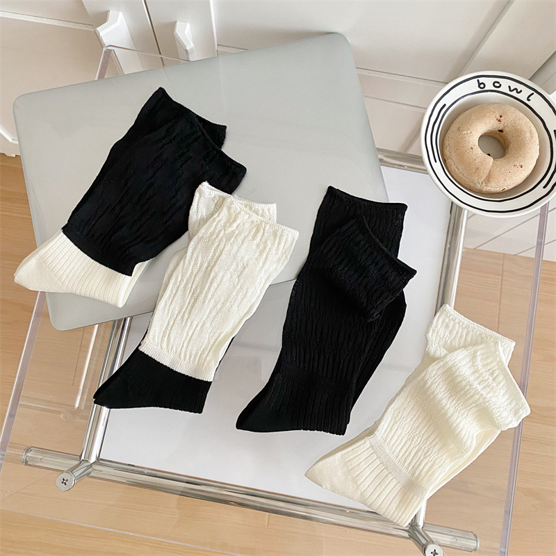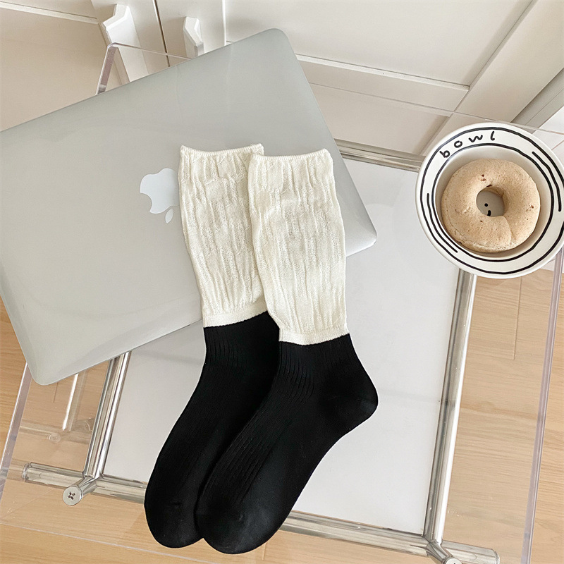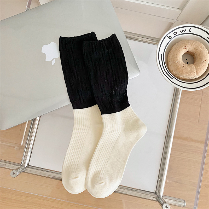 黑白袜子女春夏堆堆袜透气网眼撞色中筒棉袜ins潮外穿搭配长袜