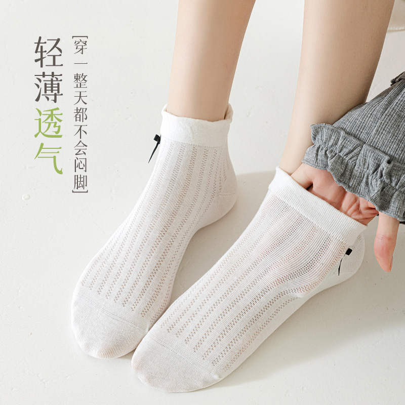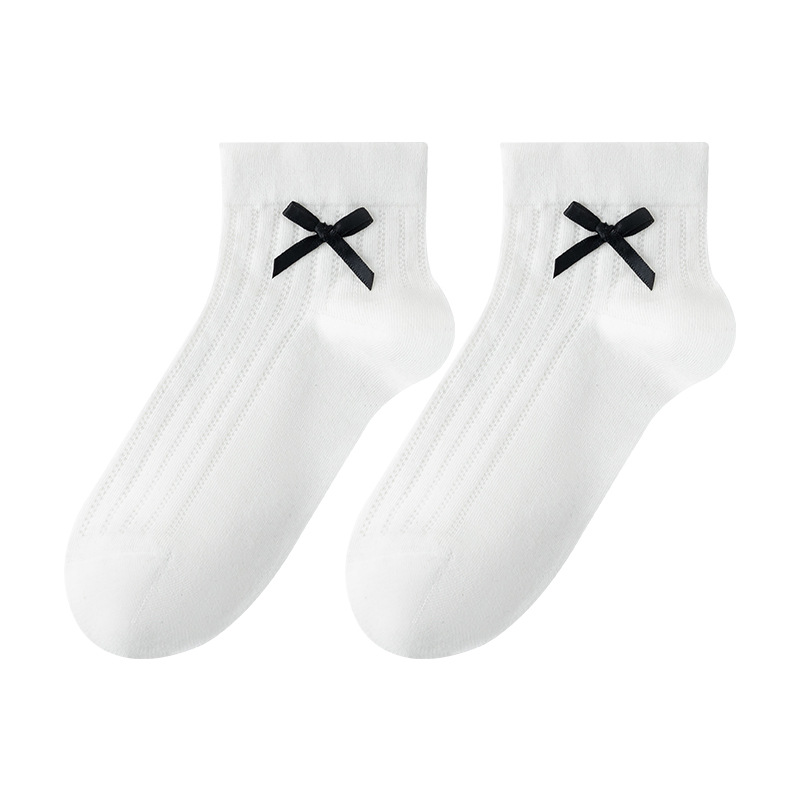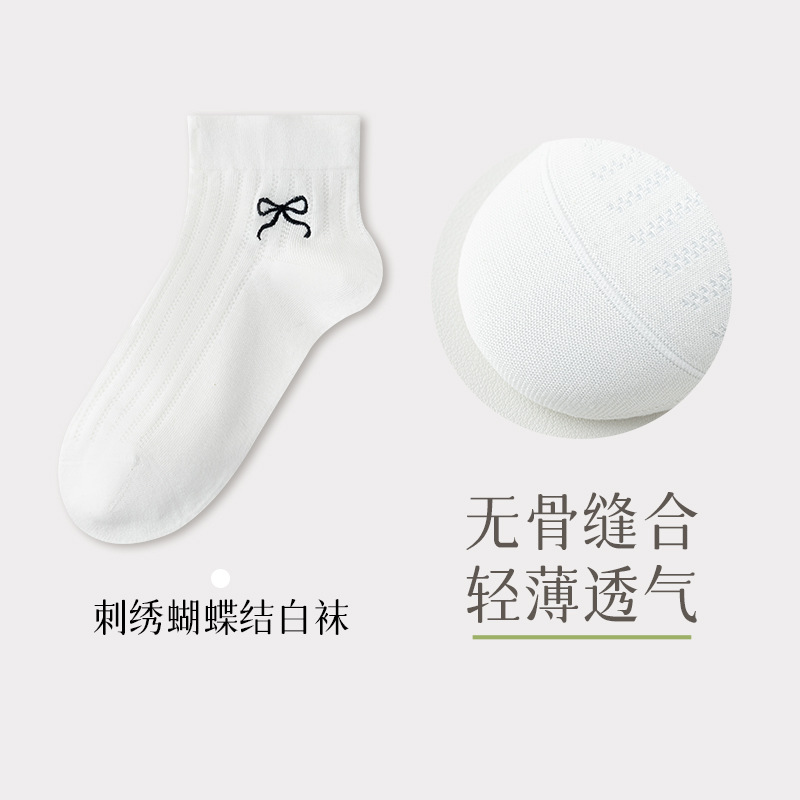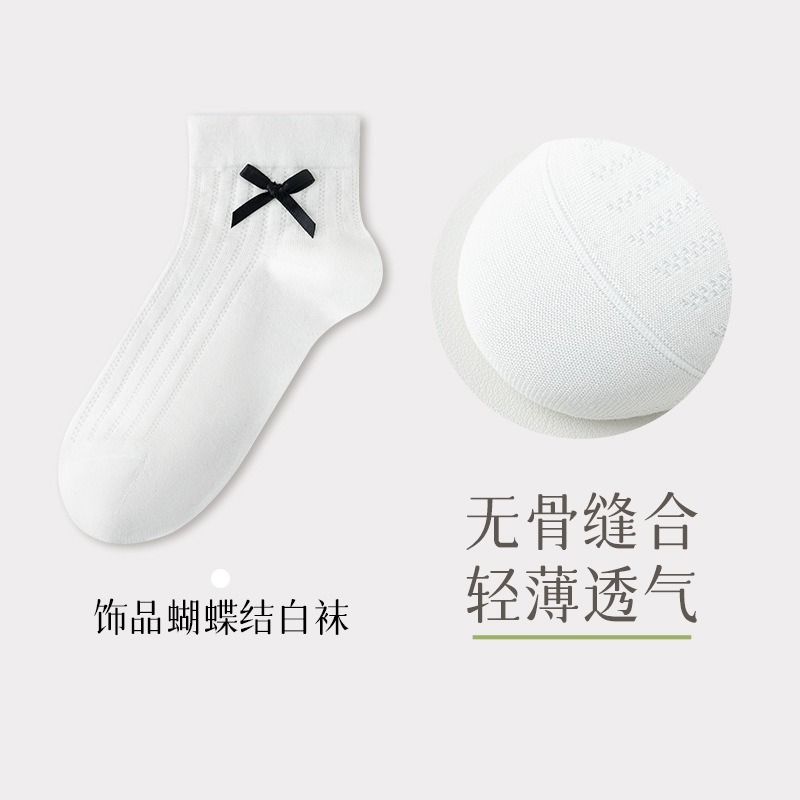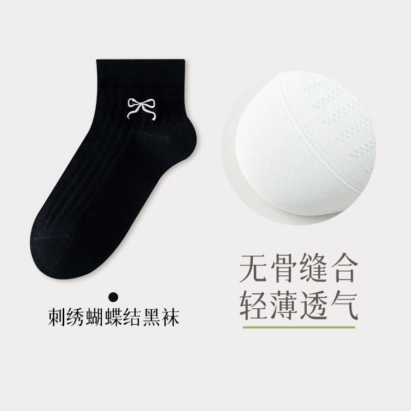 袜子女夏季一体机无骨袜头超薄蝴蝶结船袜经典黑白色系百搭短袜子