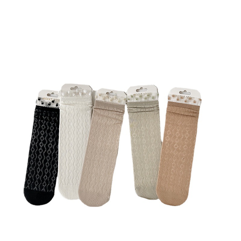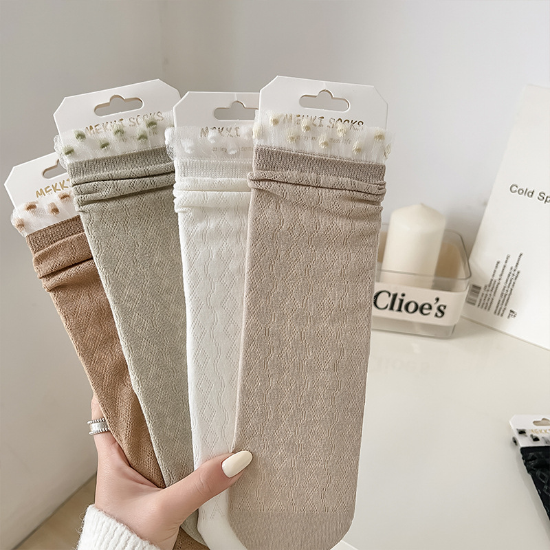 白色蕾丝堆堆袜子女春夏中筒棉袜ins潮日系甜美薄款jk花边长袜
