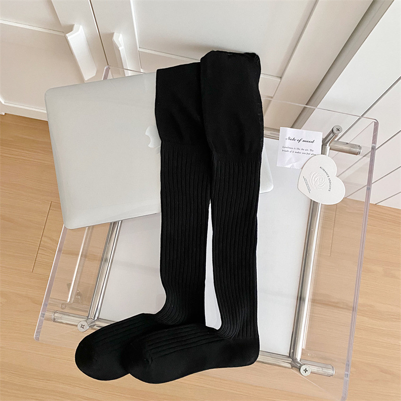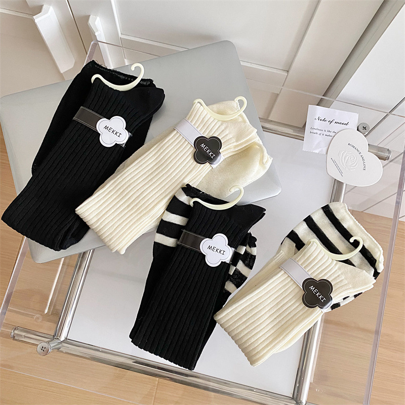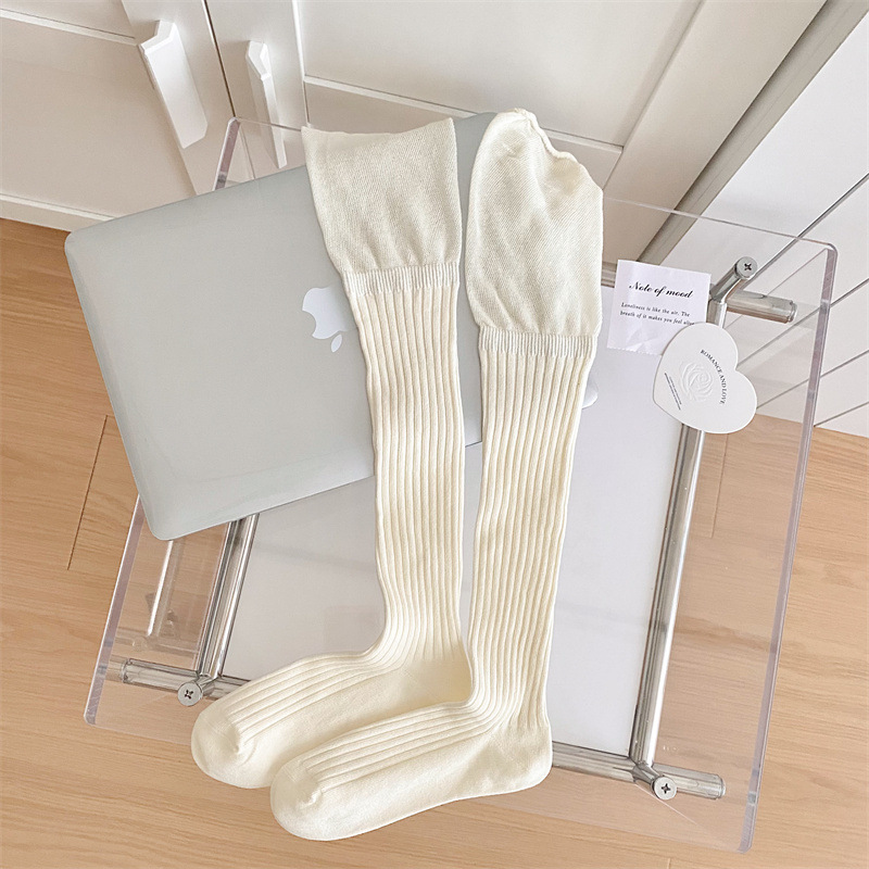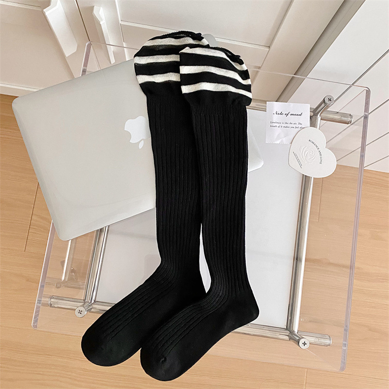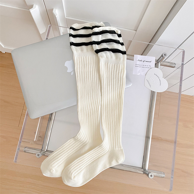白色条纹JK过膝袜韩版显瘦双针长筒棉袜春夏学院风配小皮鞋ins潮