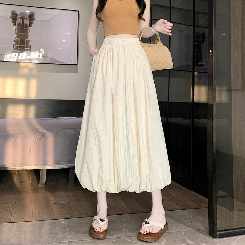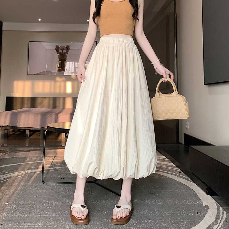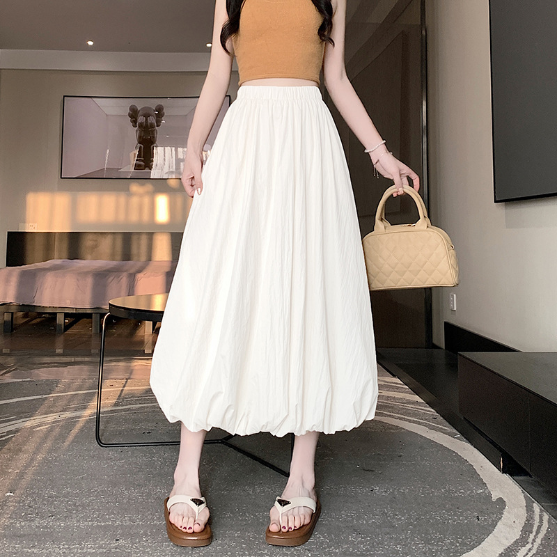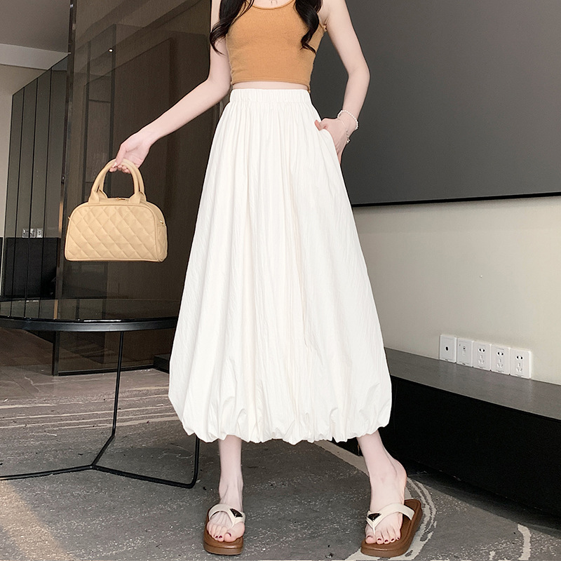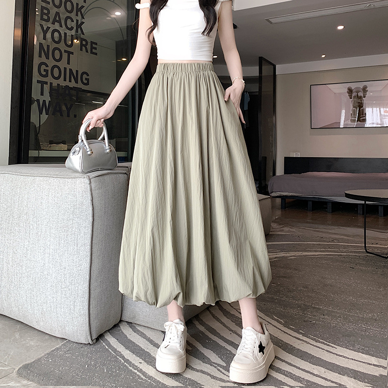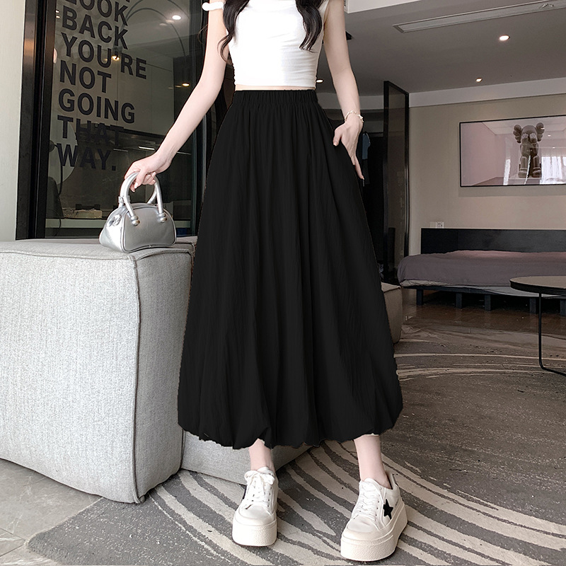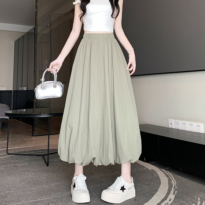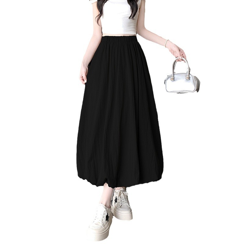 花苞半身裙女夏季新款高腰宽松A字裙遮胯工装复古长裙子
