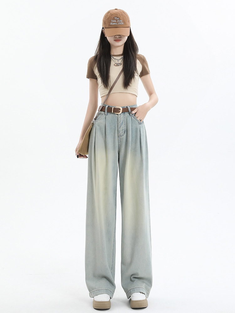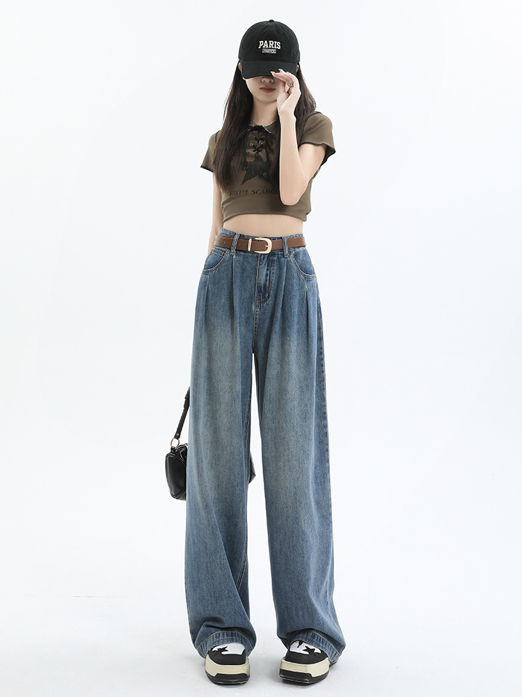 窄版阔腿牛仔裤女夏季新款爆款高腰宽松直筒拖地裤子港风百搭