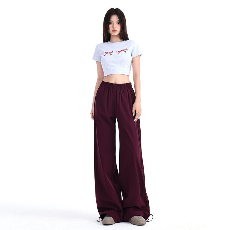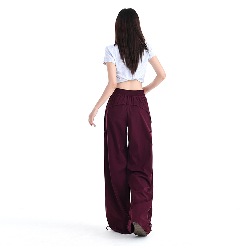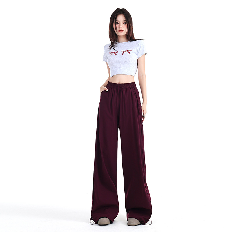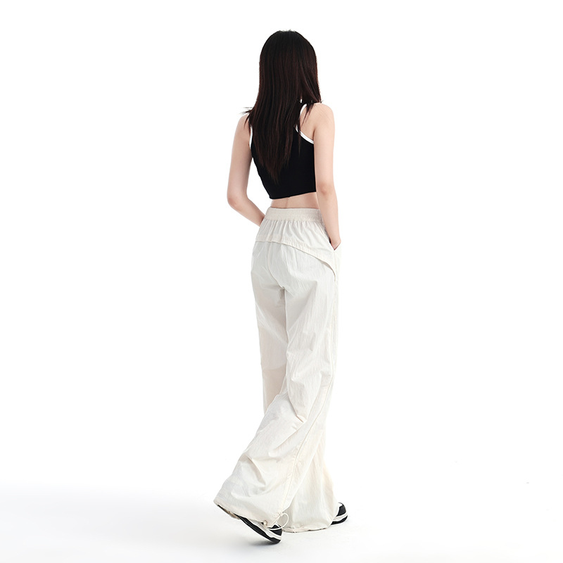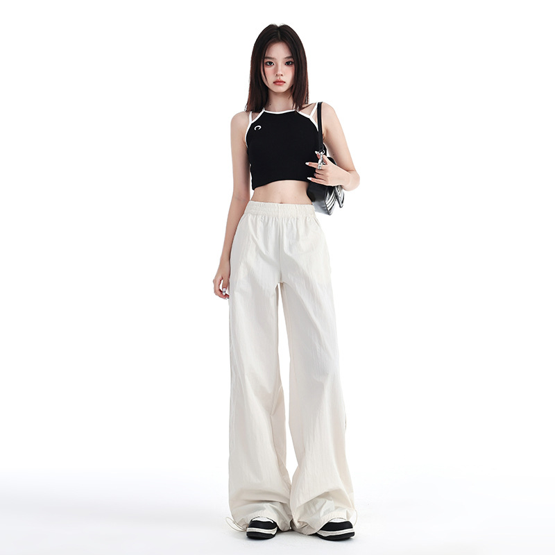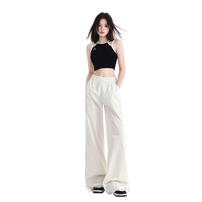夏季新款阔腿休闲裤女时尚松紧腰可束脚抽绳设计感直筒拖地裤
