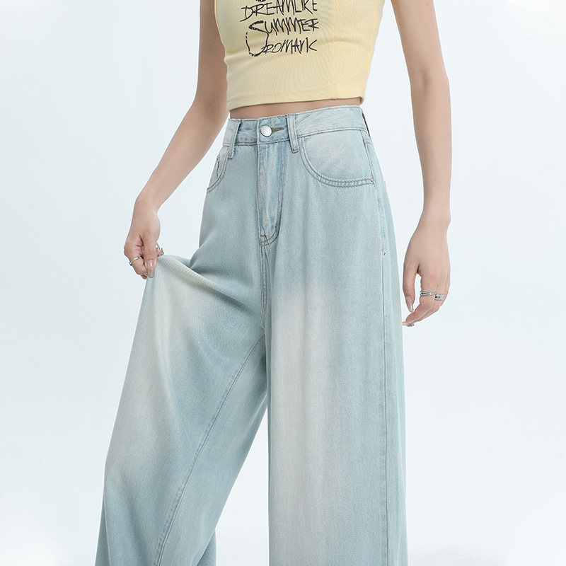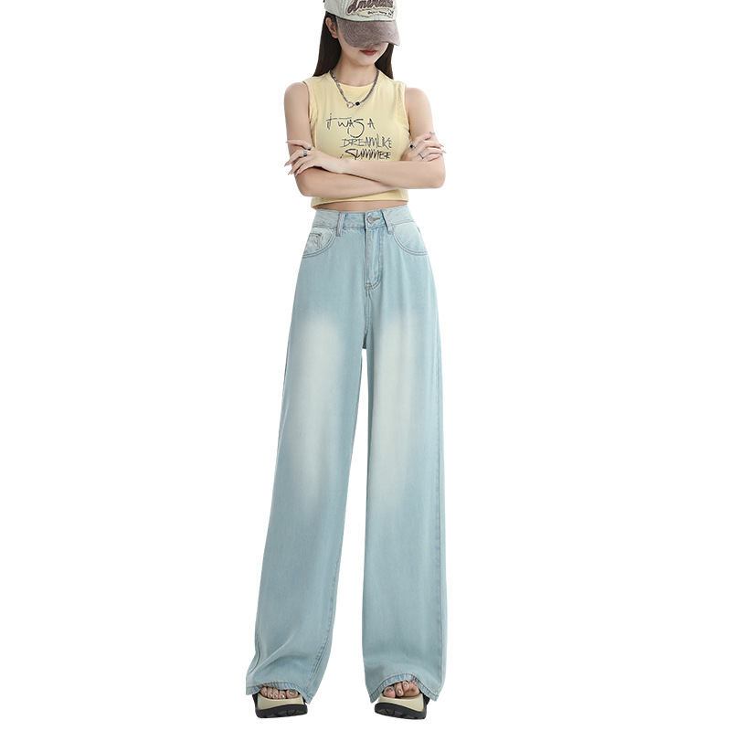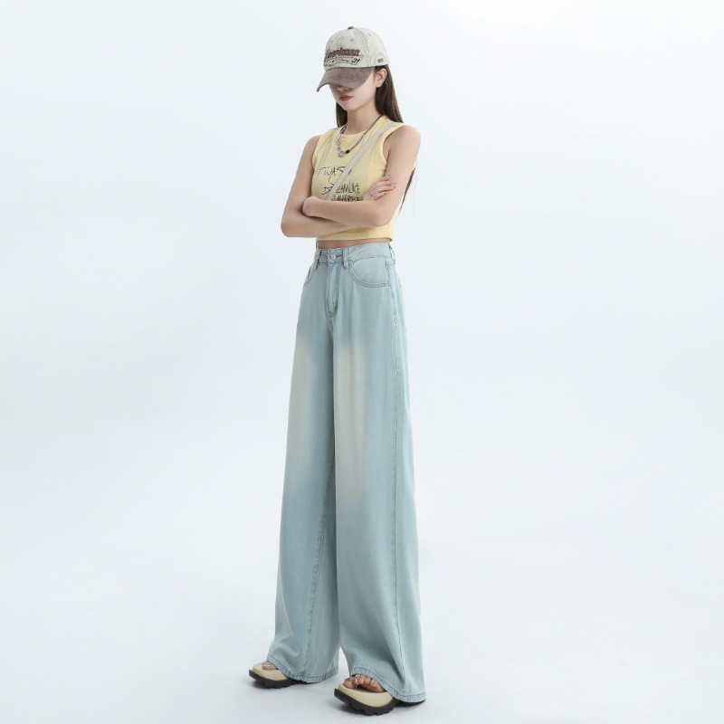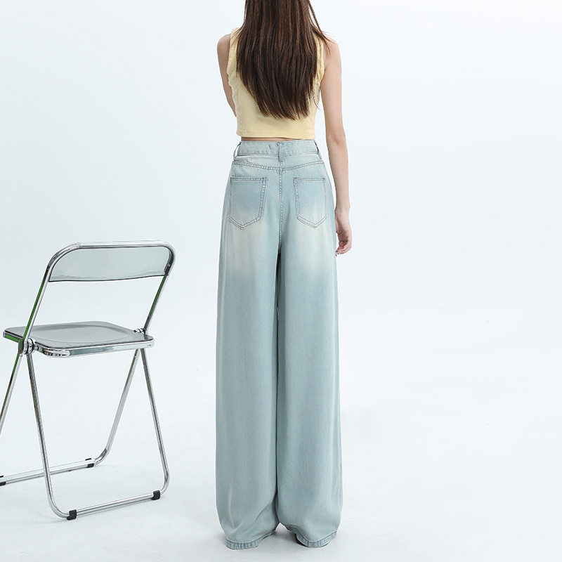 天丝阔腿牛仔裤女夏季薄款高腰垂顺感宽松时髦穿搭冰丝直筒拖地裤