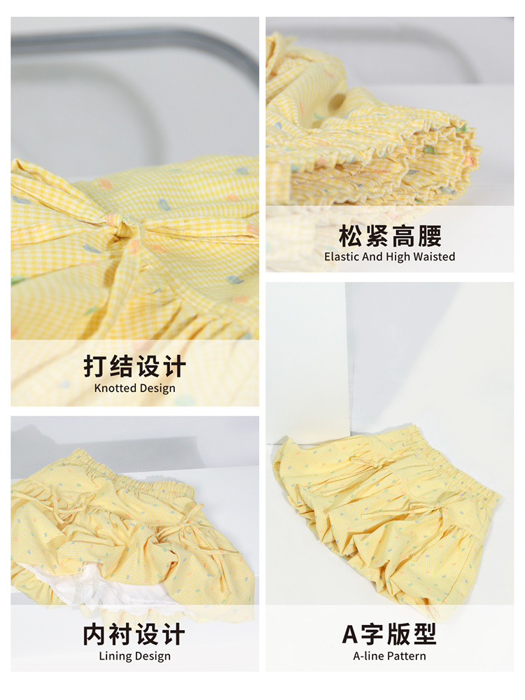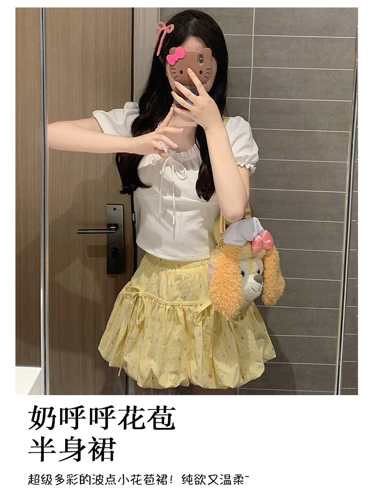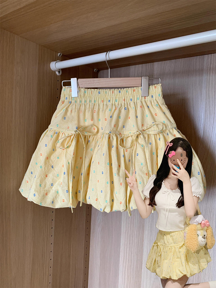 奶黄色花苞半身裙女波点短裙高腰小个子蓬蓬a字蛋糕裙子夏季灯笼