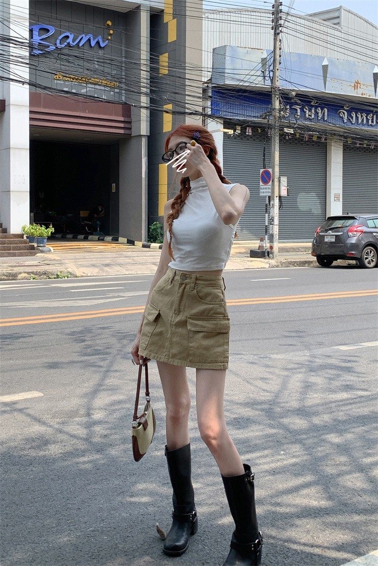 复古工装牛仔半身裙女夏季高腰宽松显瘦a字裙美式辣妹短裙子ins潮