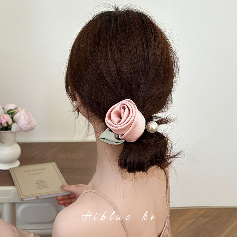 真丝玫瑰花珍珠发圈森系仙美女高级感新款扎马尾绑头发绳