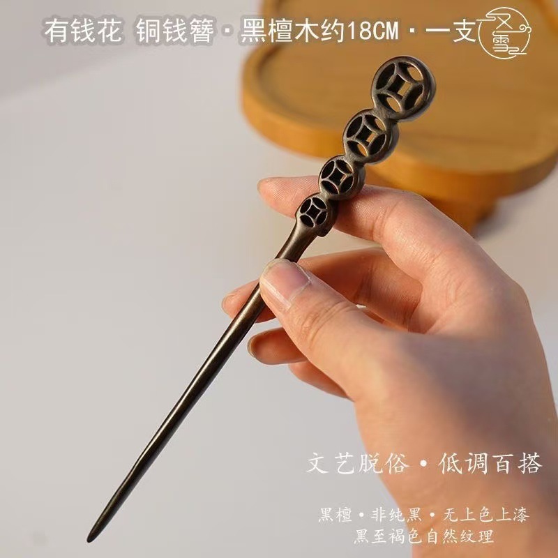 一雪有钱铜钱发簪发饰檀木中式高级古风簪子盘发