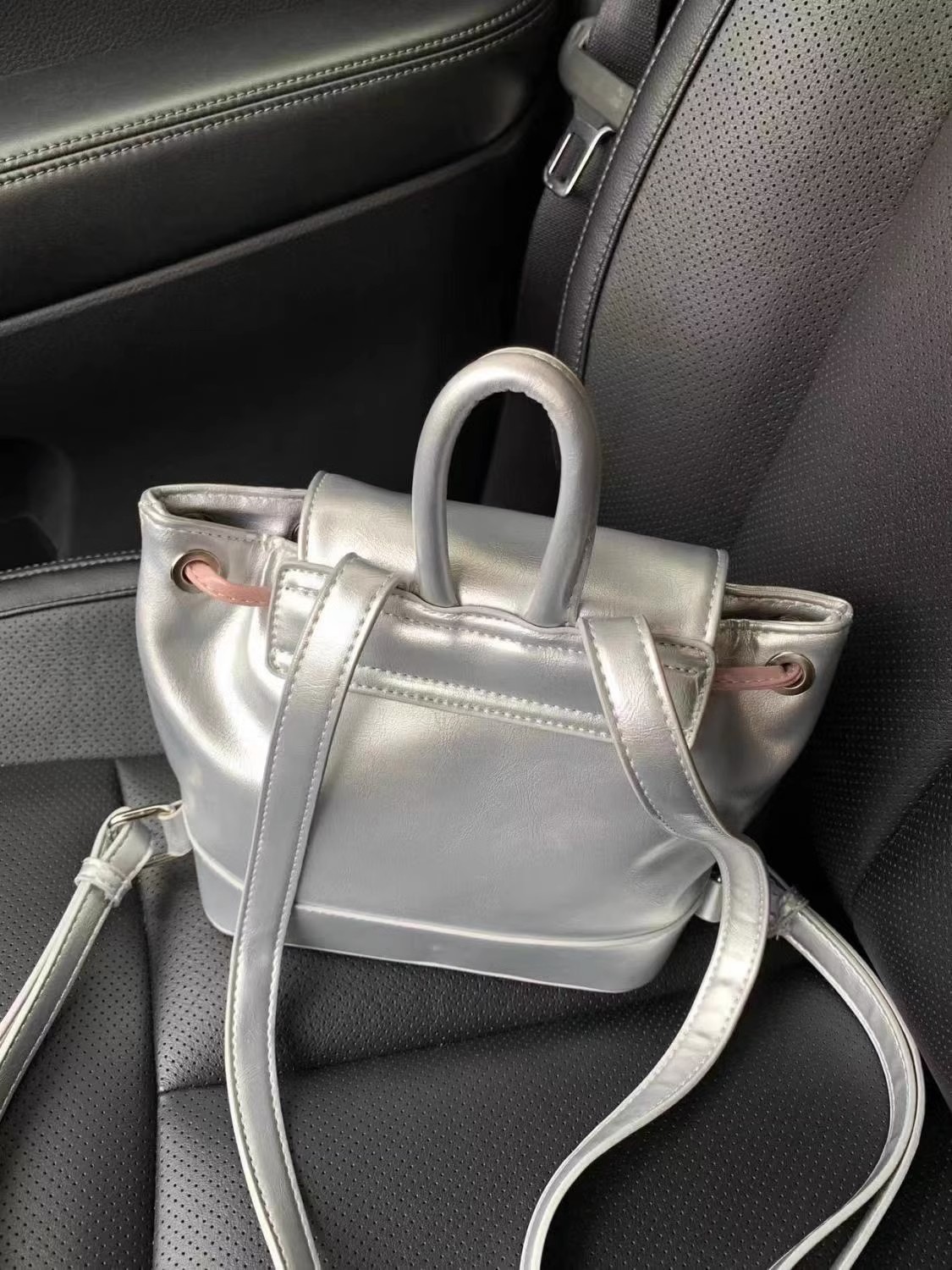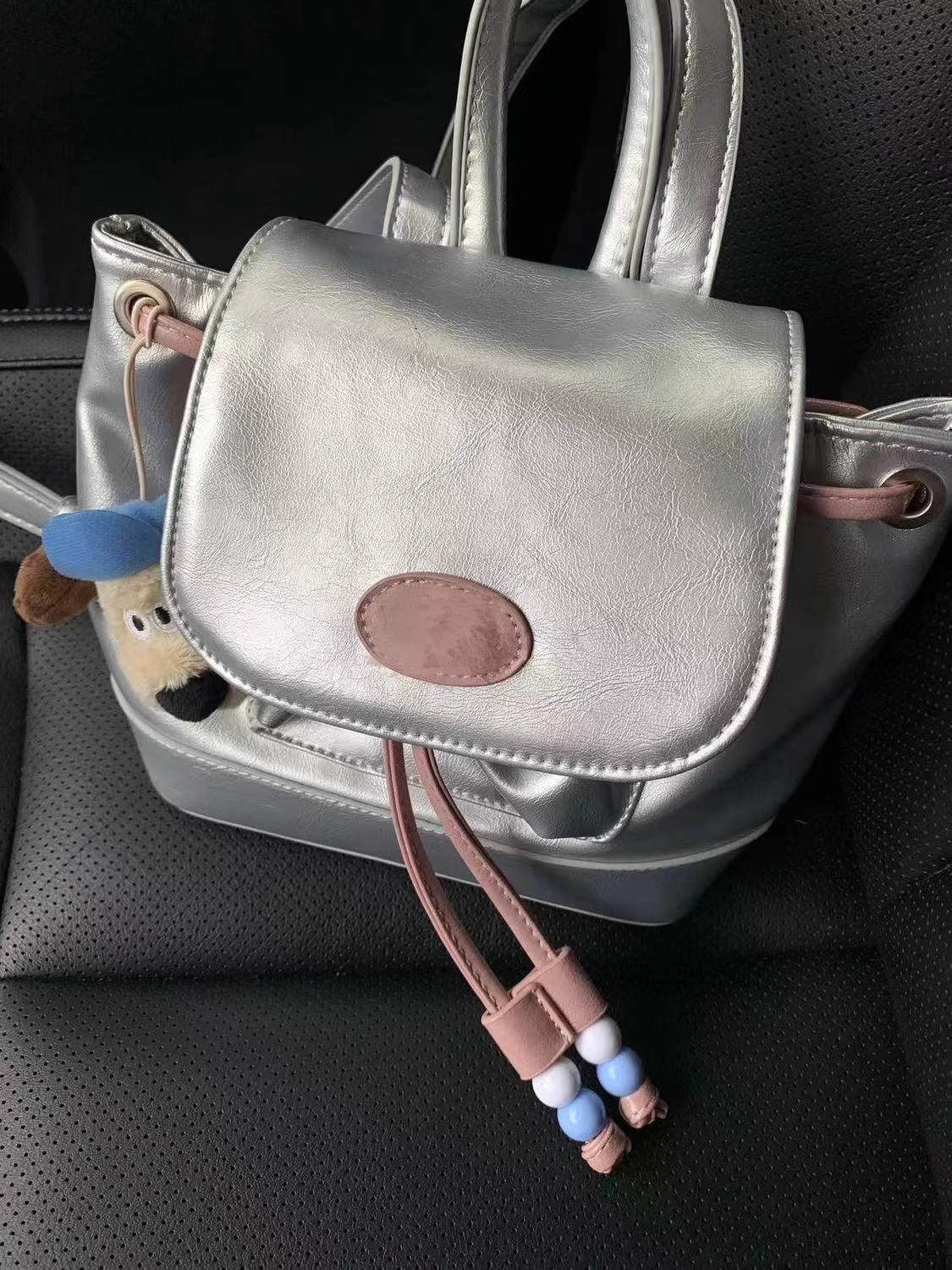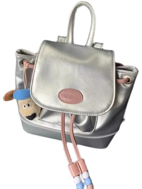新款银粉撞色双肩包小背包女软皮ins小众简约休闲单肩包