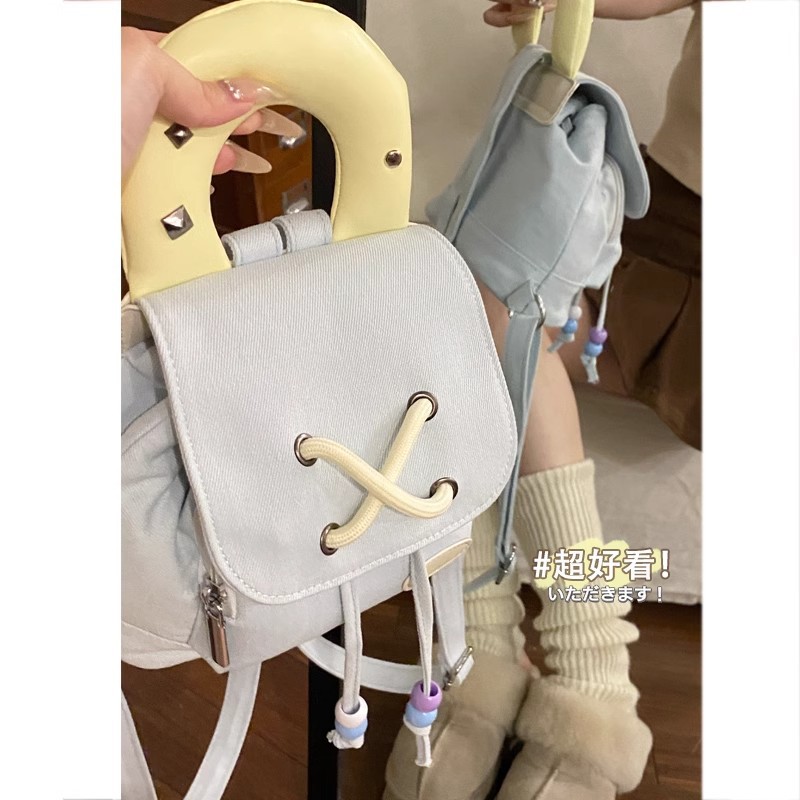 牛仔布双肩包包新款潮时尚学院风背包撞色手提水桶包