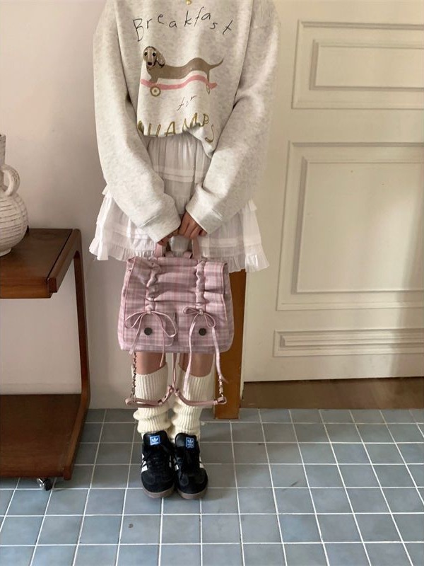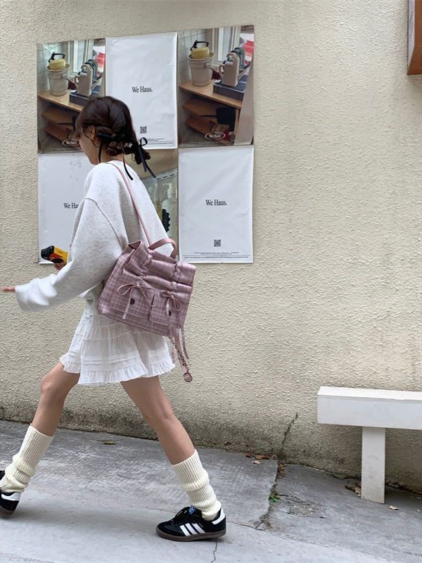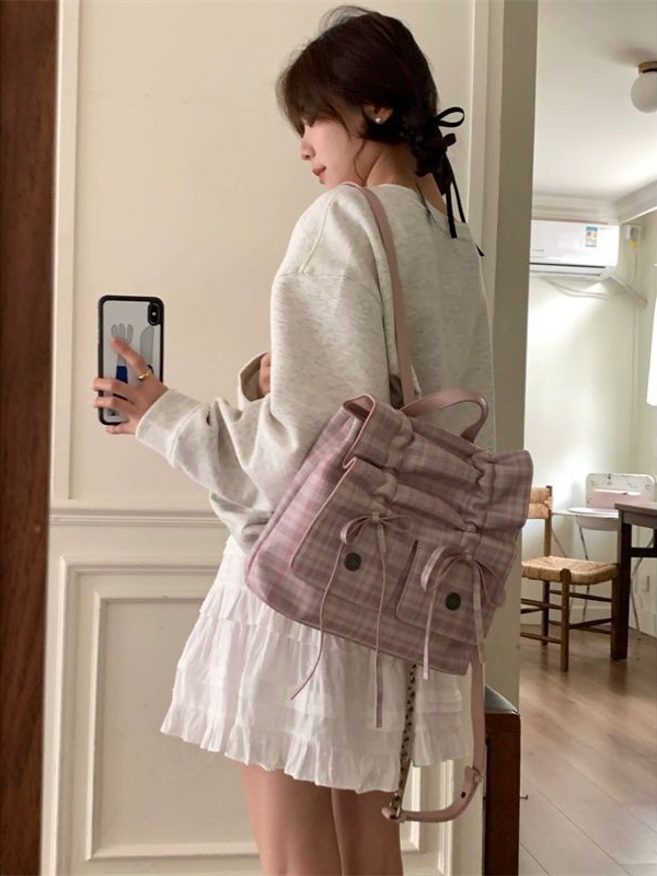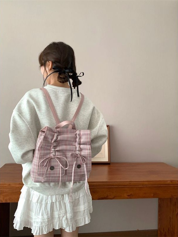 新款芭蕾风包包女大容量双肩包小众休闲背包褶皱蝴蝶结通勤包