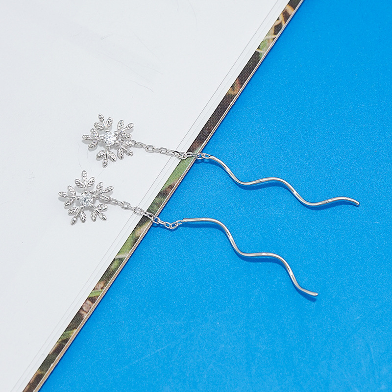 S925纯银耳线 韩版简约雪花波浪花朵耳环超仙显瘦免摘气质耳饰