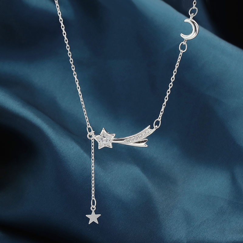 S990纯银流星项链女新款潮韩版轻奢小众设计感星月锁骨链