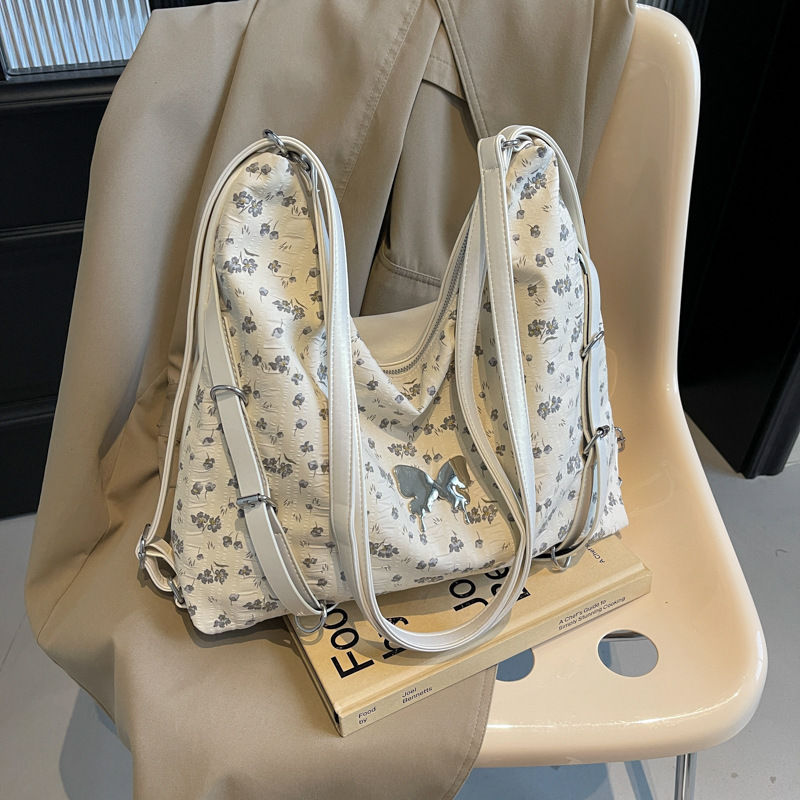 大容量腋下包包女式新款夏天碎花帆布单肩包百搭通勤托特包