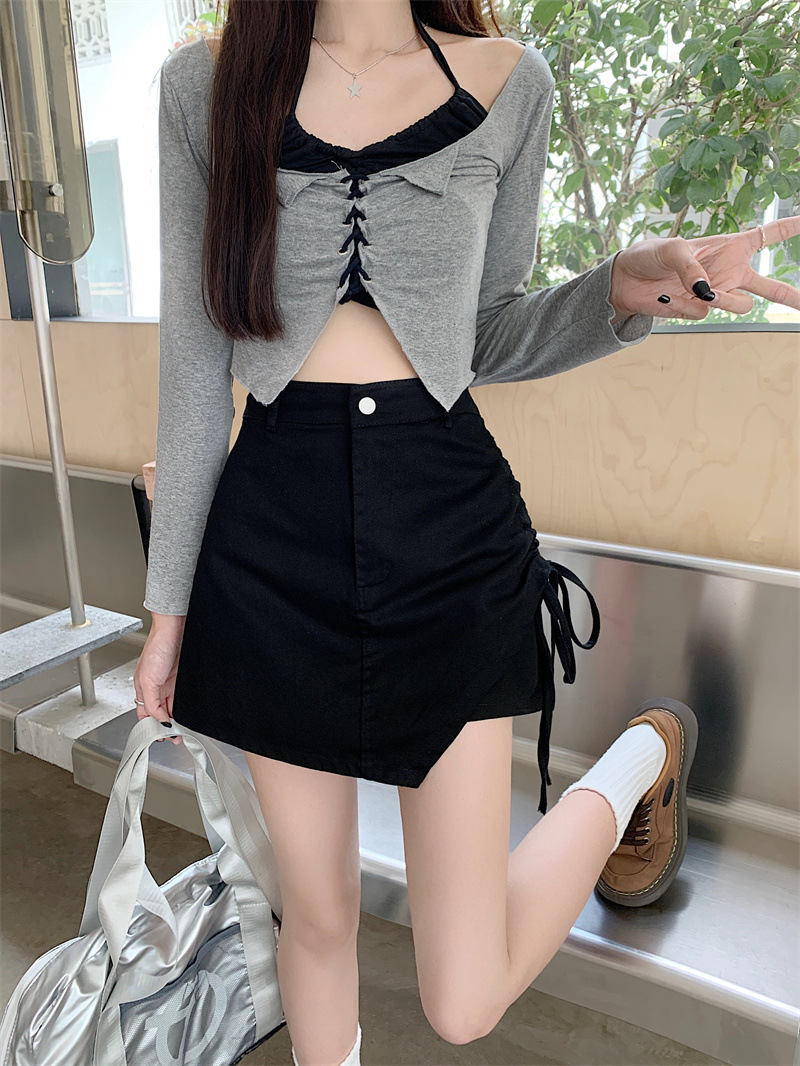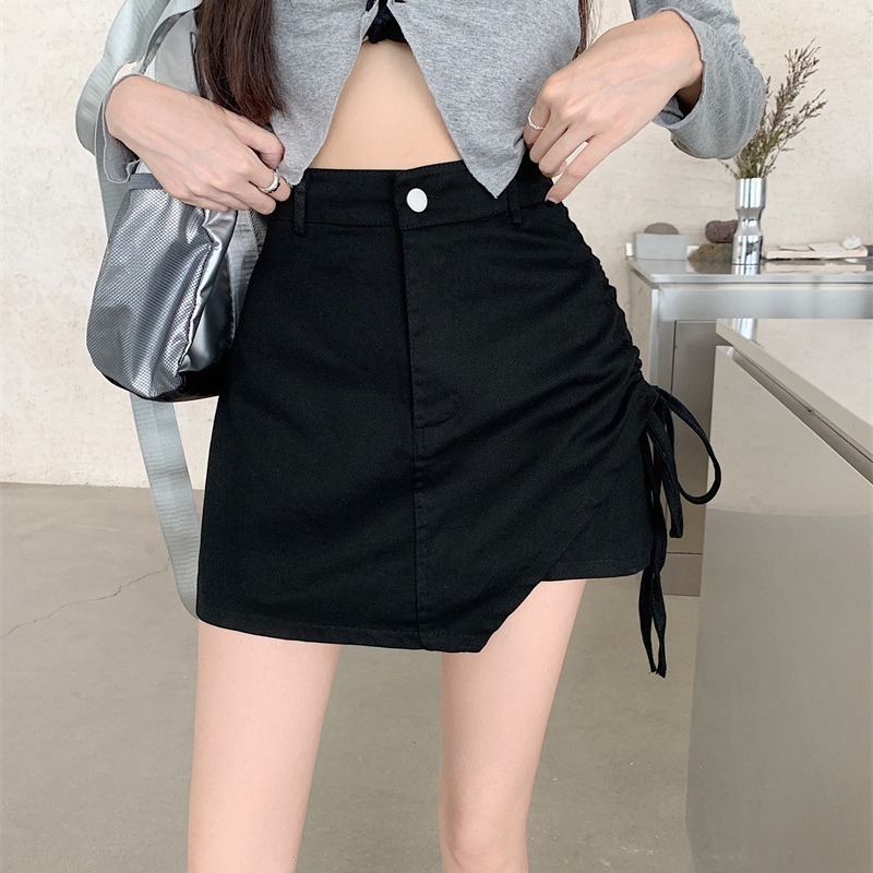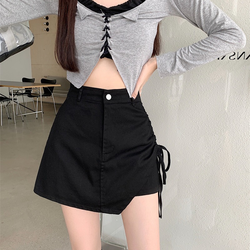 弹力短裤女夏季新款不规则抽绳半身裙辣妹高腰显瘦包臀裤裙