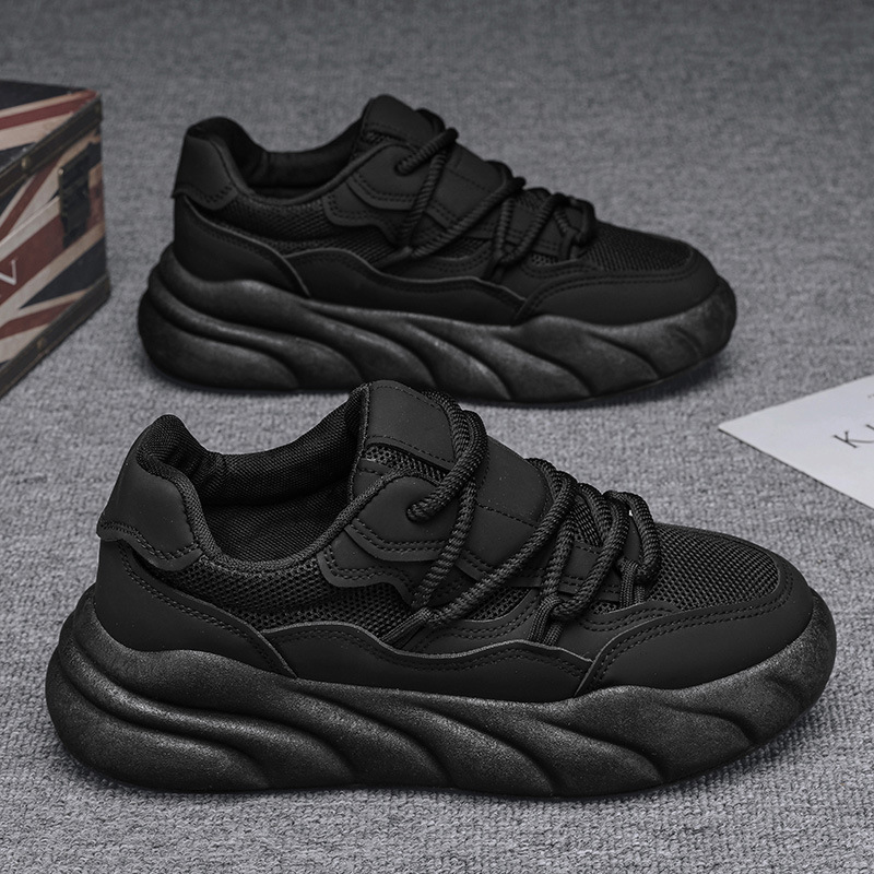 男士新款夏季透气新款网面休闲面包板鞋运动防滑厚底增高老爹潮鞋