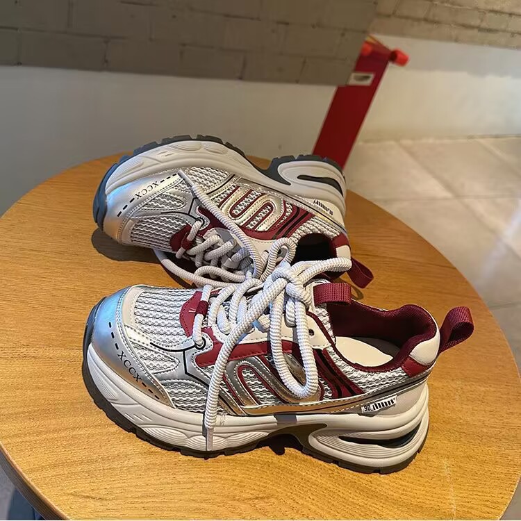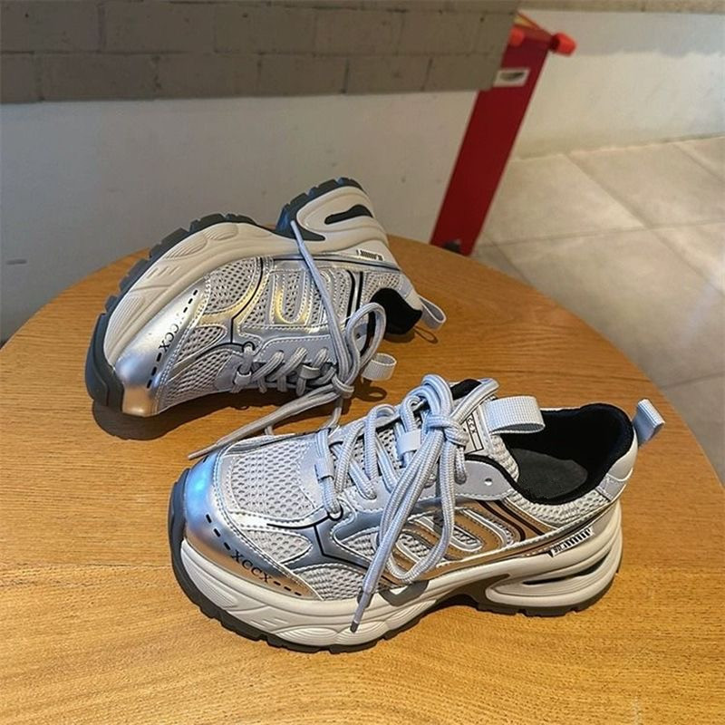 银色老爹鞋女春季新款厚底增高网面透气百搭轻便休闲运动鞋子
