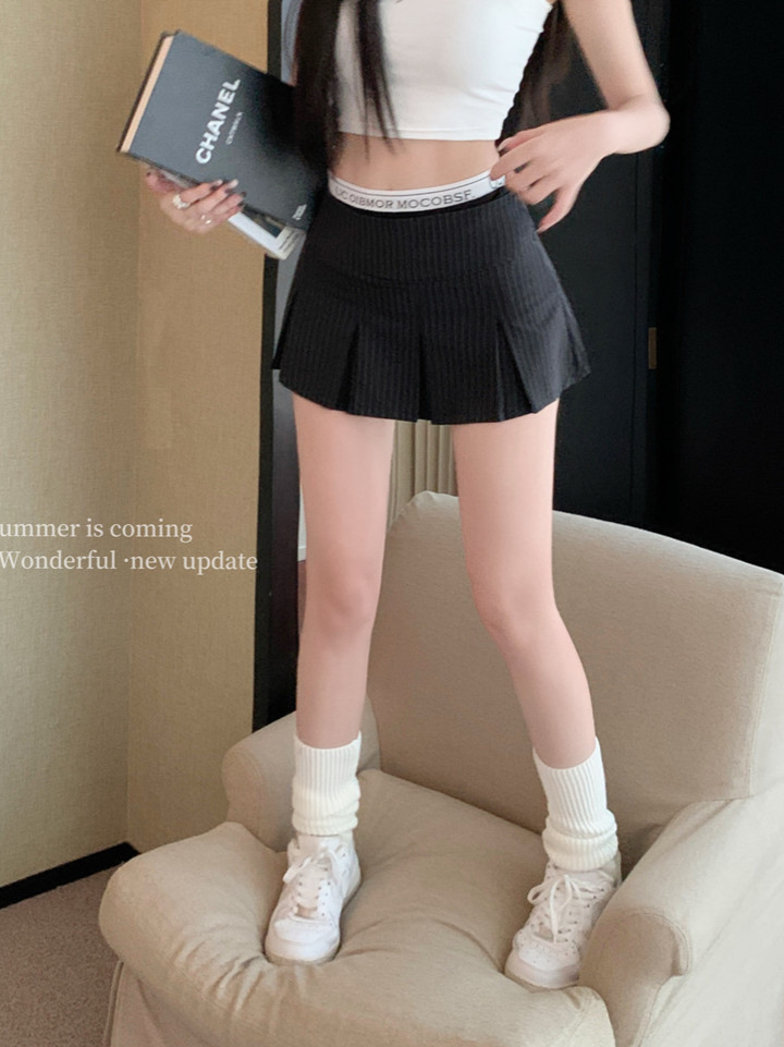 美式条纹半身裙女夏季新款复古设计感百褶低腰显瘦遮跨a字短裙裤