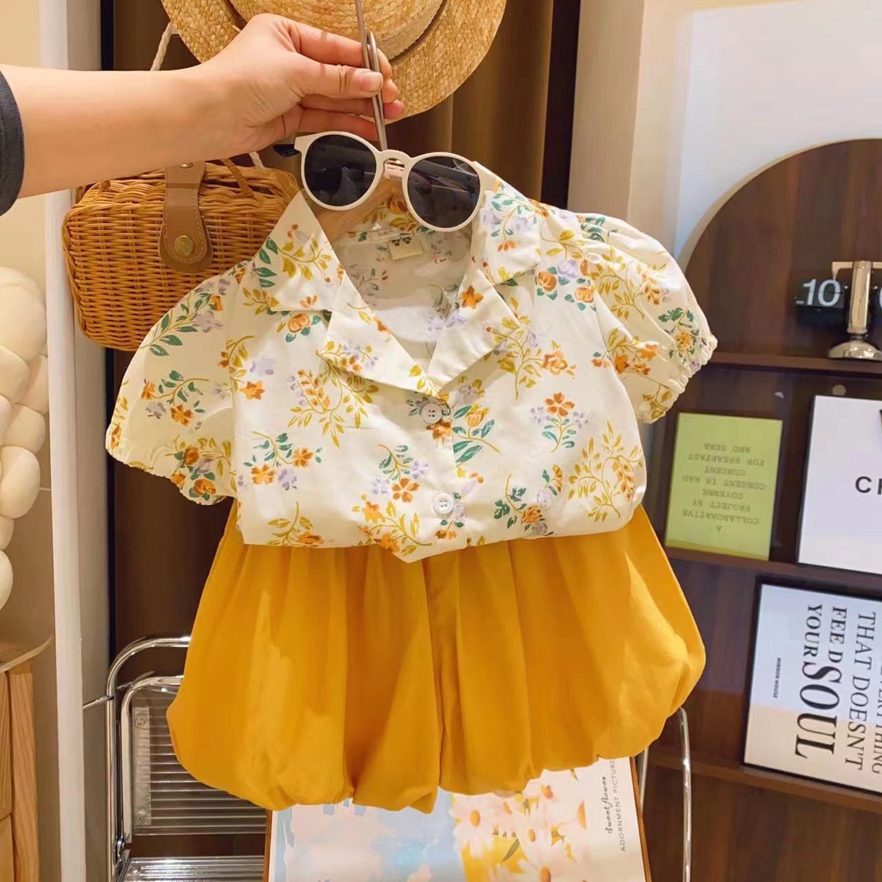 女童套装小清新碎花翻领短袖衬衫花苞短裤两件套2025夏装新品