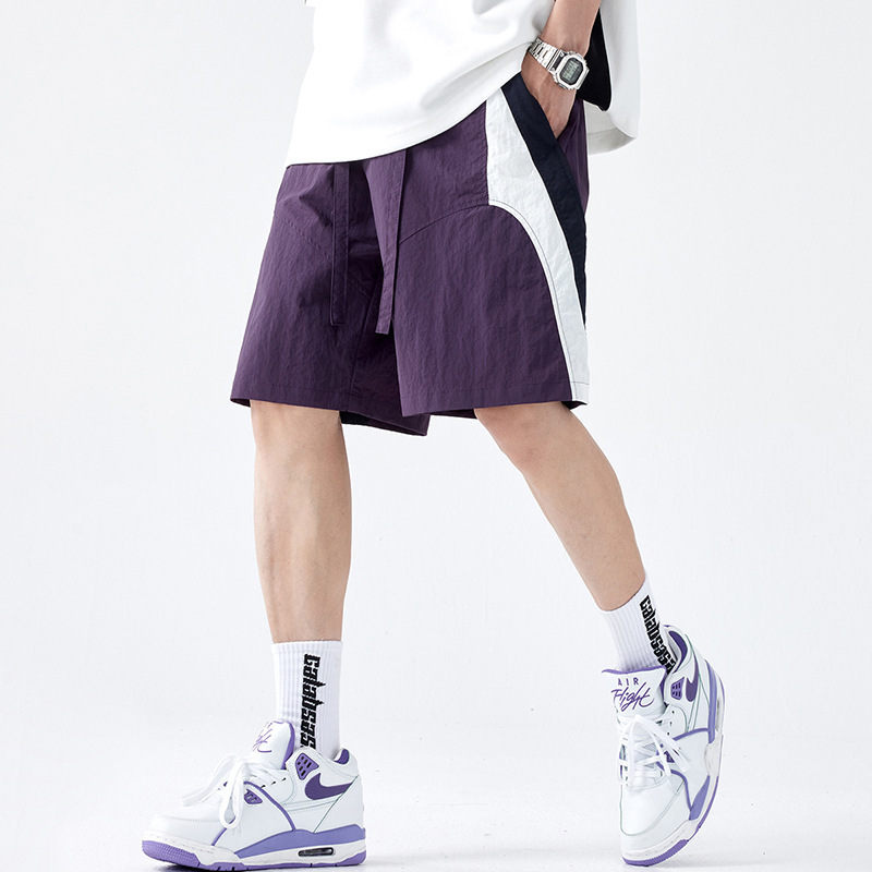夏季薄款拼接五分短裤男款潮流ins百搭休闲宽松运动潮中裤子男