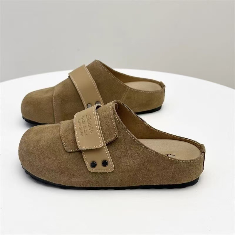 复古博肯半拖鞋女外穿厚底魔术贴2025新款芒果头一脚蹬德训包头拖