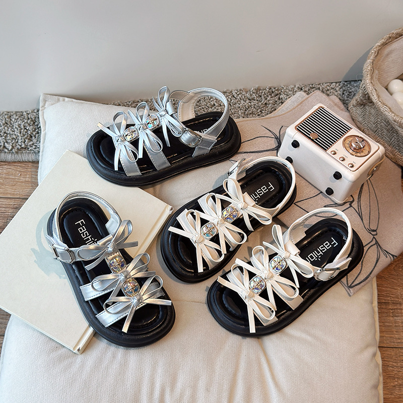 女童时尚百搭罗马凉鞋2025夏季新款蝴蝶结公主鞋中大童沙滩鞋洋气