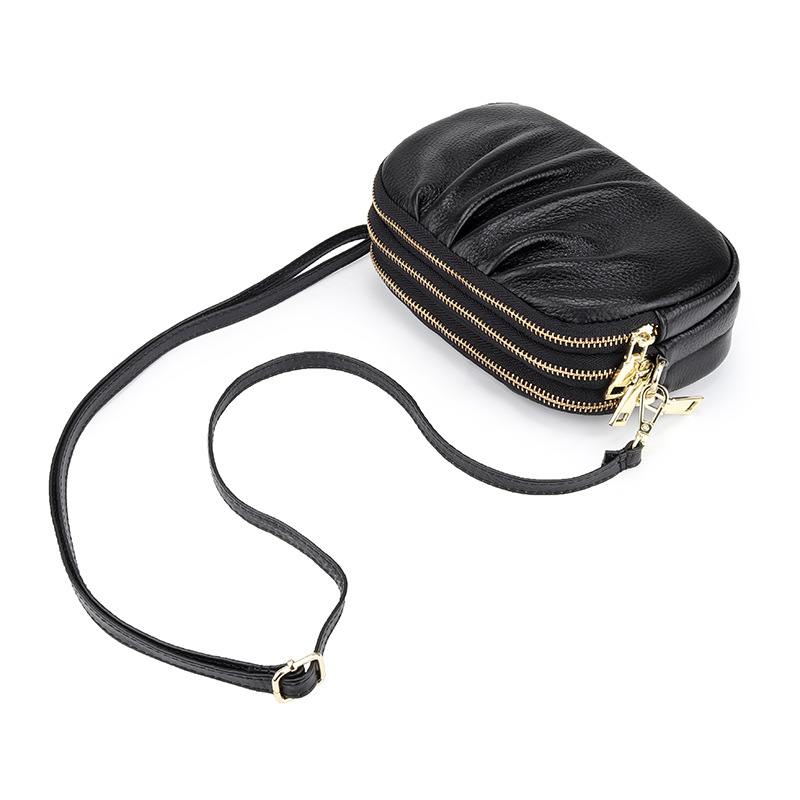 真皮女小包斜挎包包新款百搭皱褶包软皮大容量三层拉链单肩包