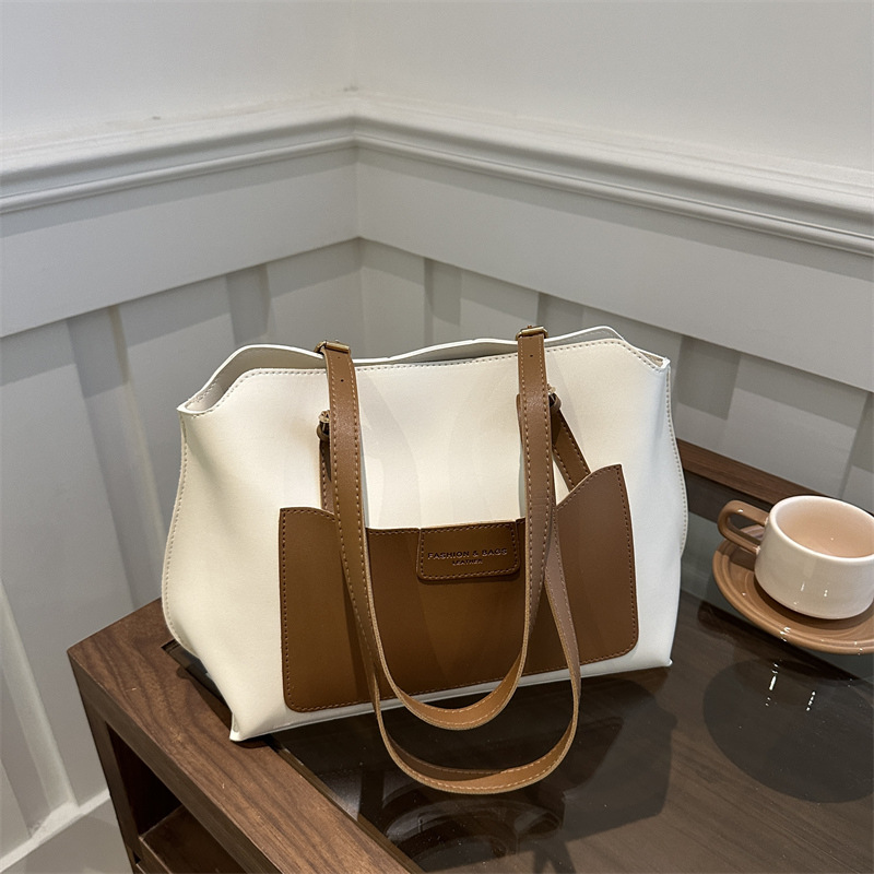 包包新款包包拼色托特包单肩包女秋冬复古百搭高级感腋下包