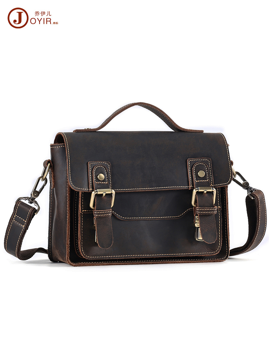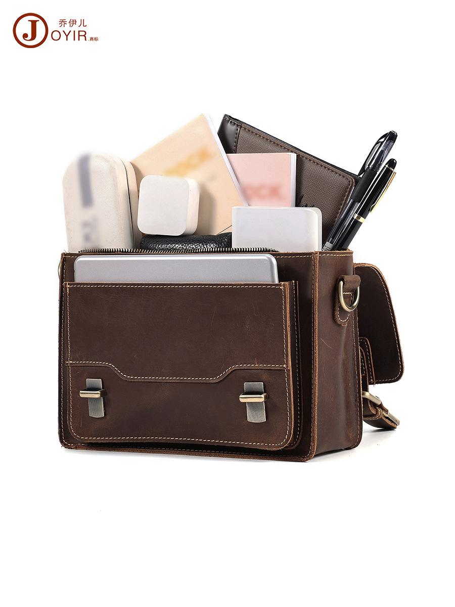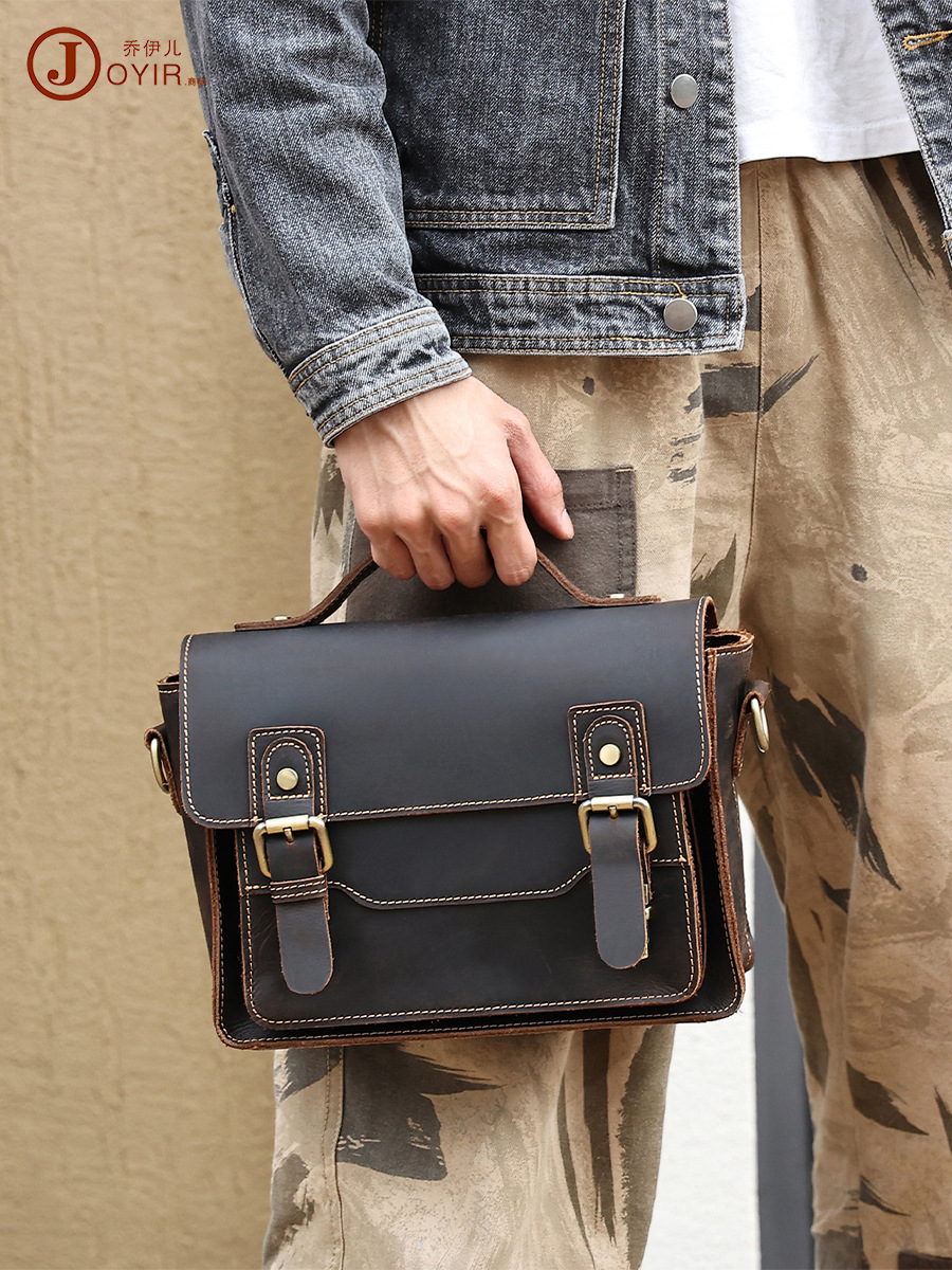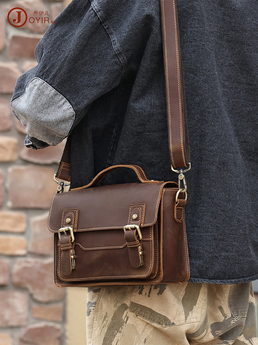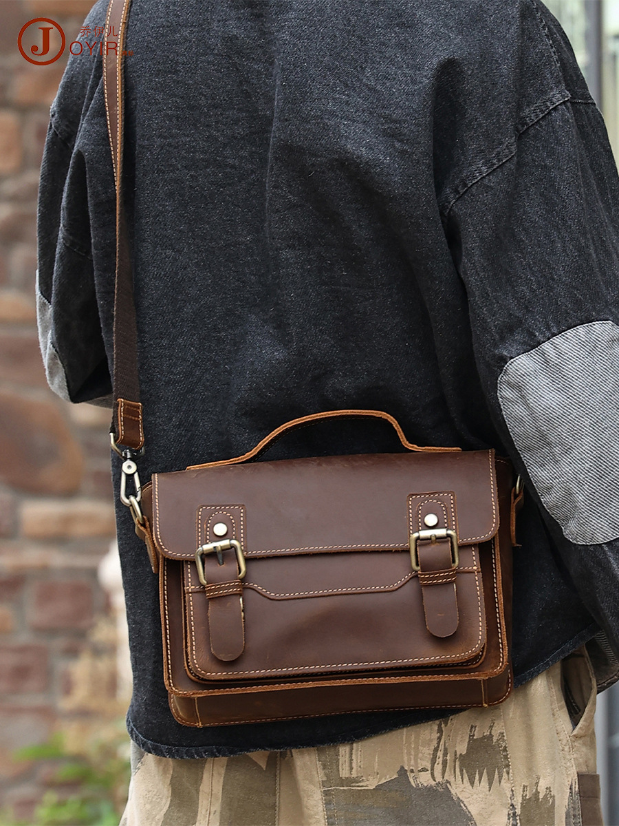 男士小方包 疯马皮休闲复古单肩包男包真皮斜挎包男款 复古邮差包