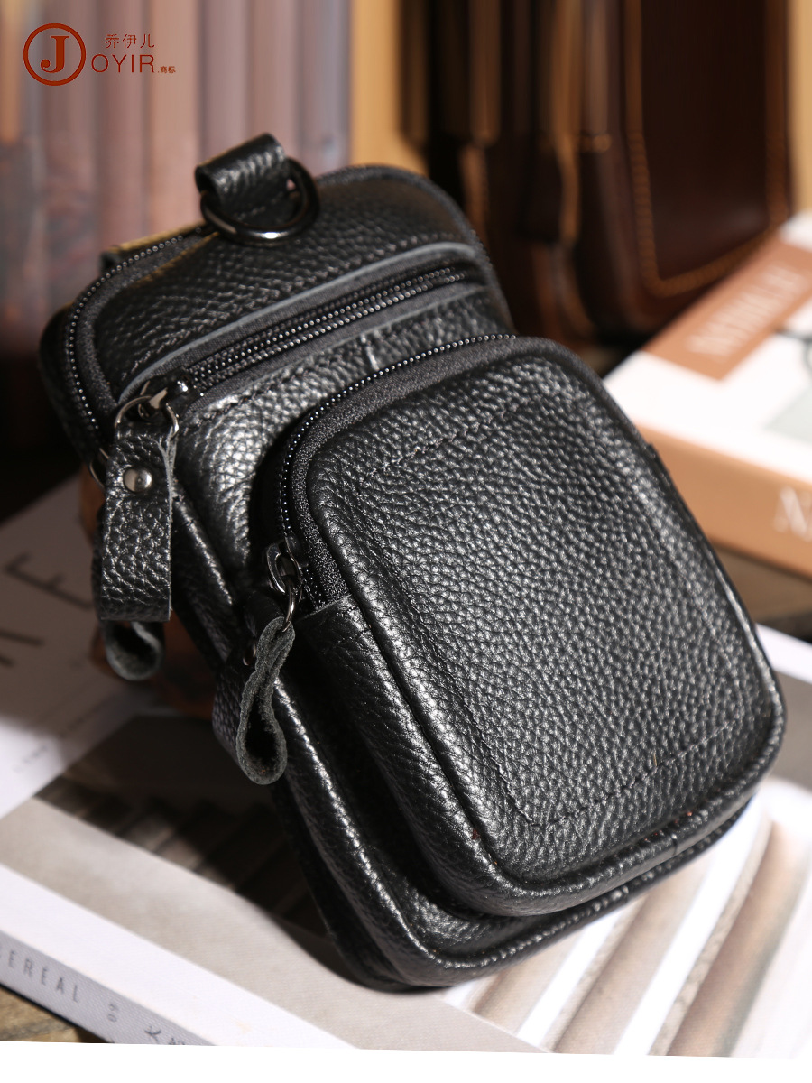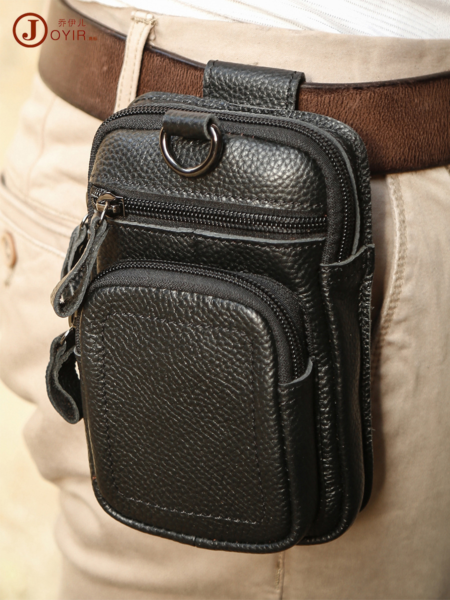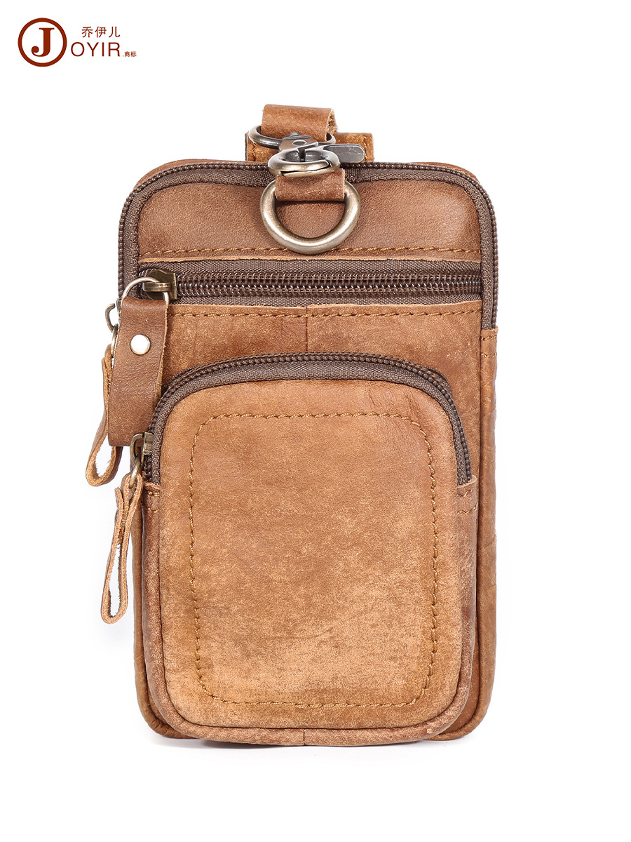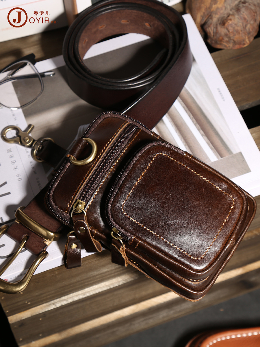 新款跑步包复古休闲运动腰包男士头层牛皮多功能穿皮带男腰包跨境