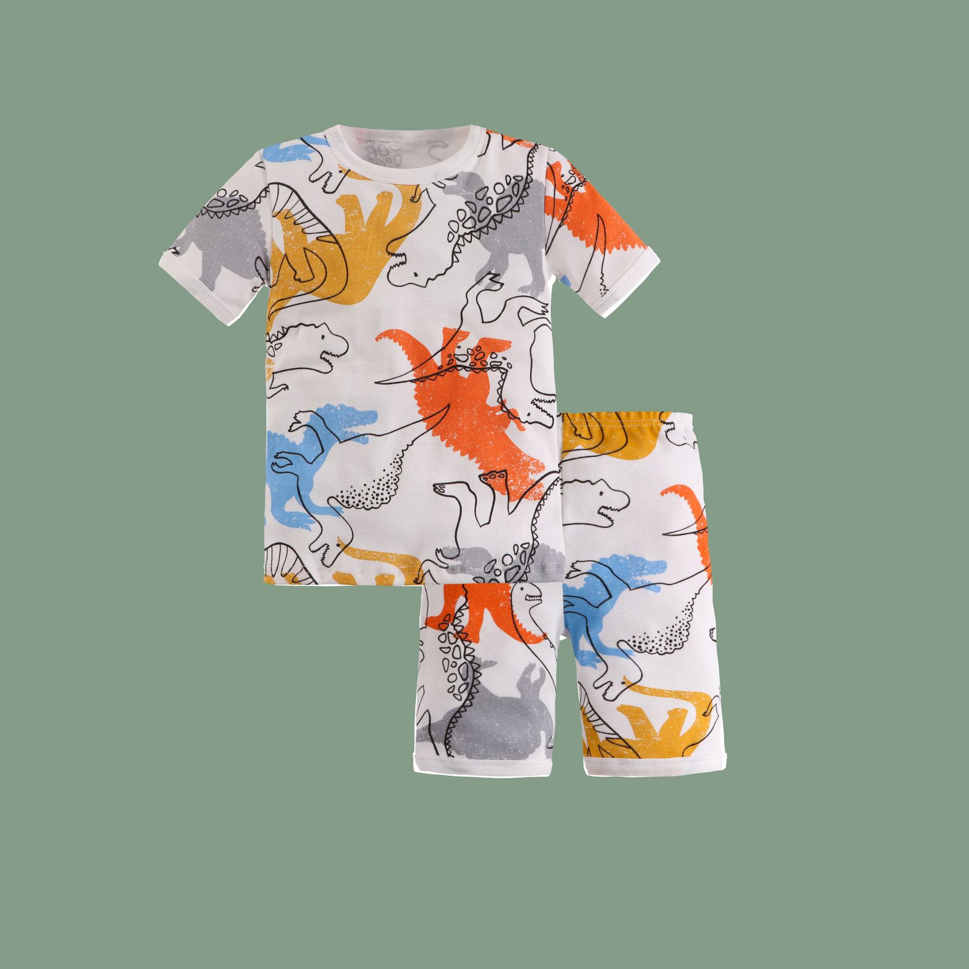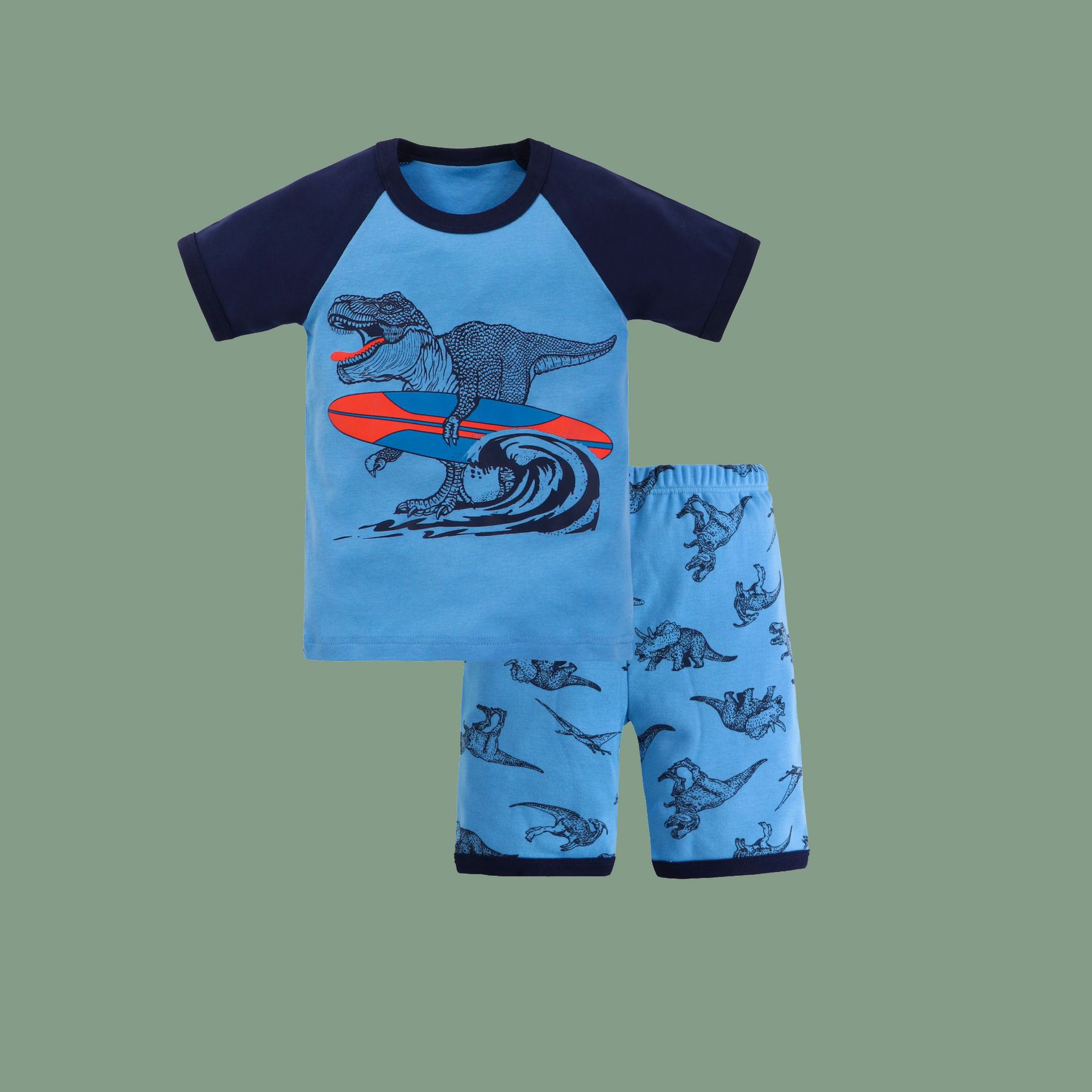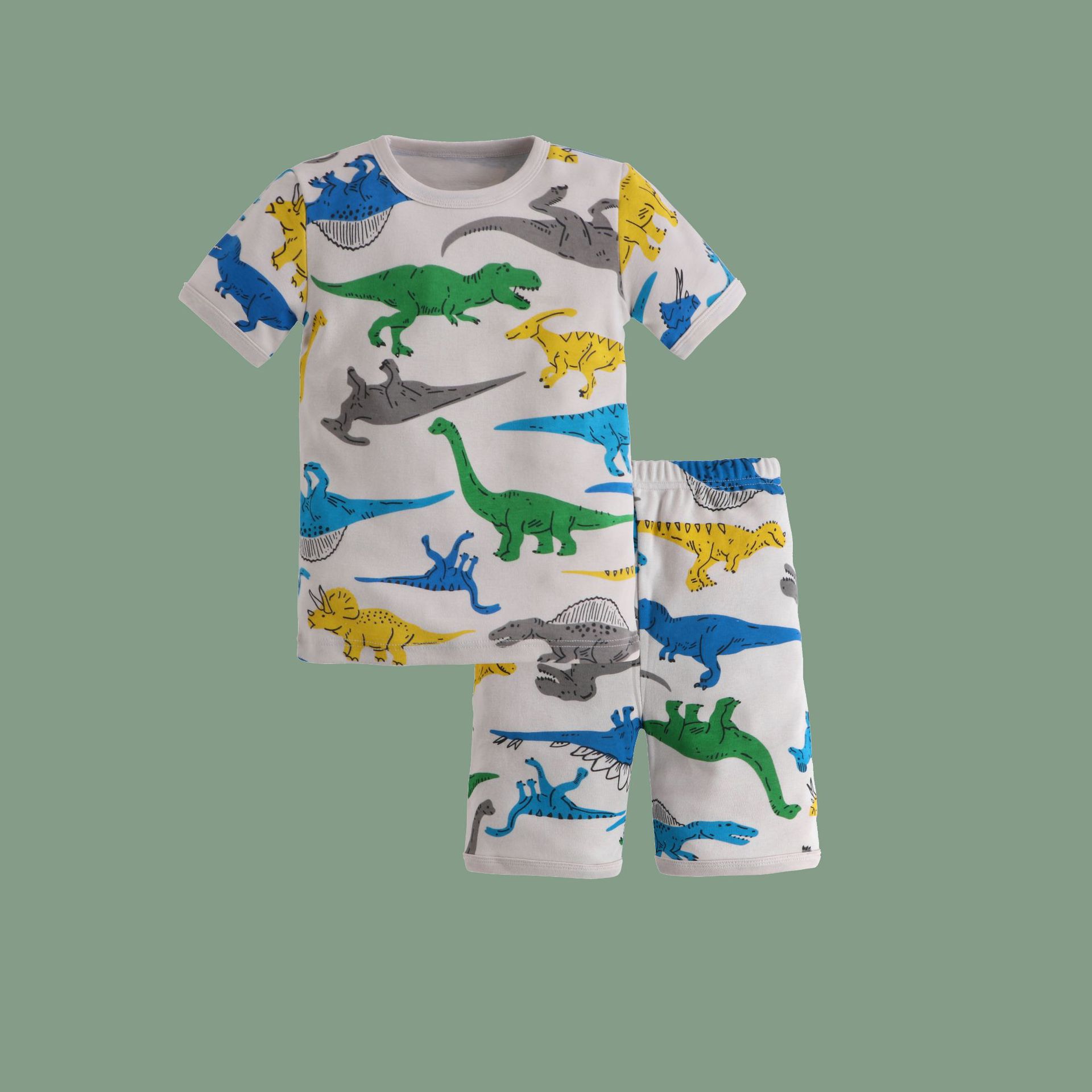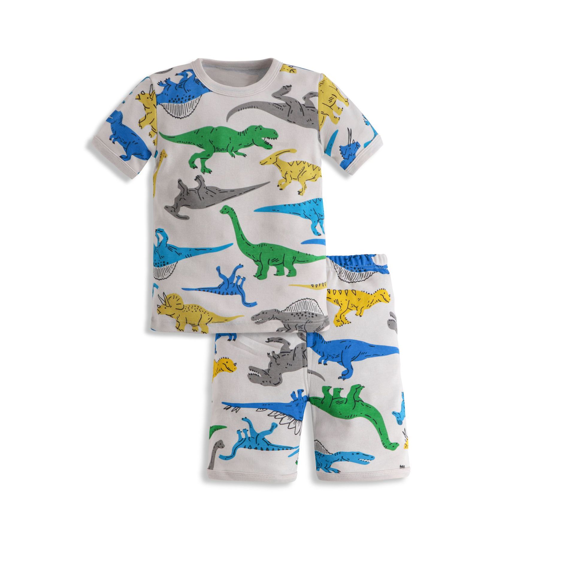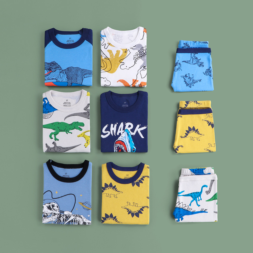 儿童睡衣夏季薄款欧美纯棉男童家居服春卡通恐龙宝宝短袖短裤套装