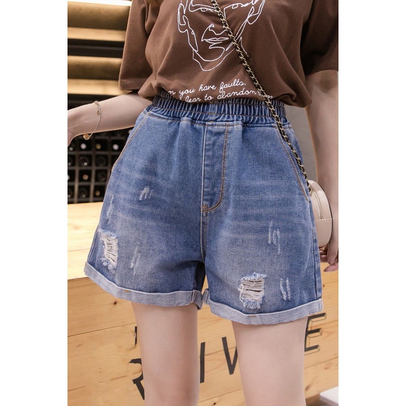胖mm大码破洞牛仔短裤女夏季薄款宽松紧高腰显瘦a字阔腿加肥200斤