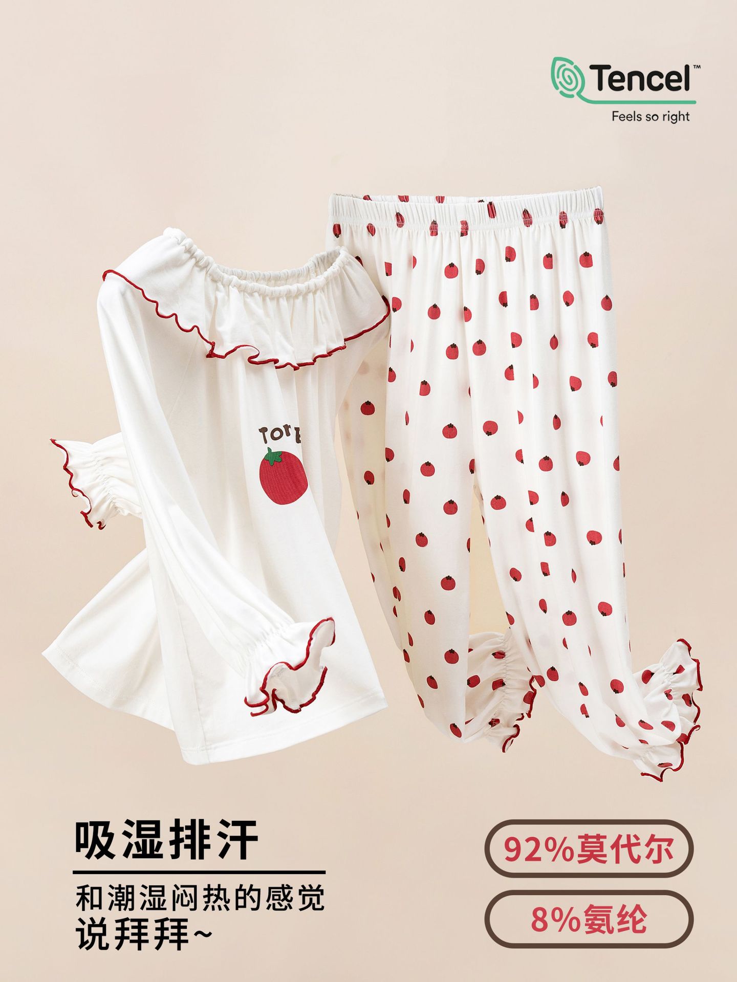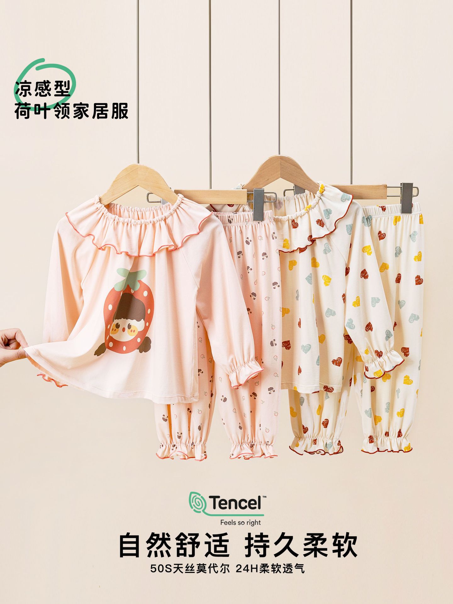 夏季薄款儿童睡衣兰精莫代尔女童天丝卡通长袖家居服中大童空调服