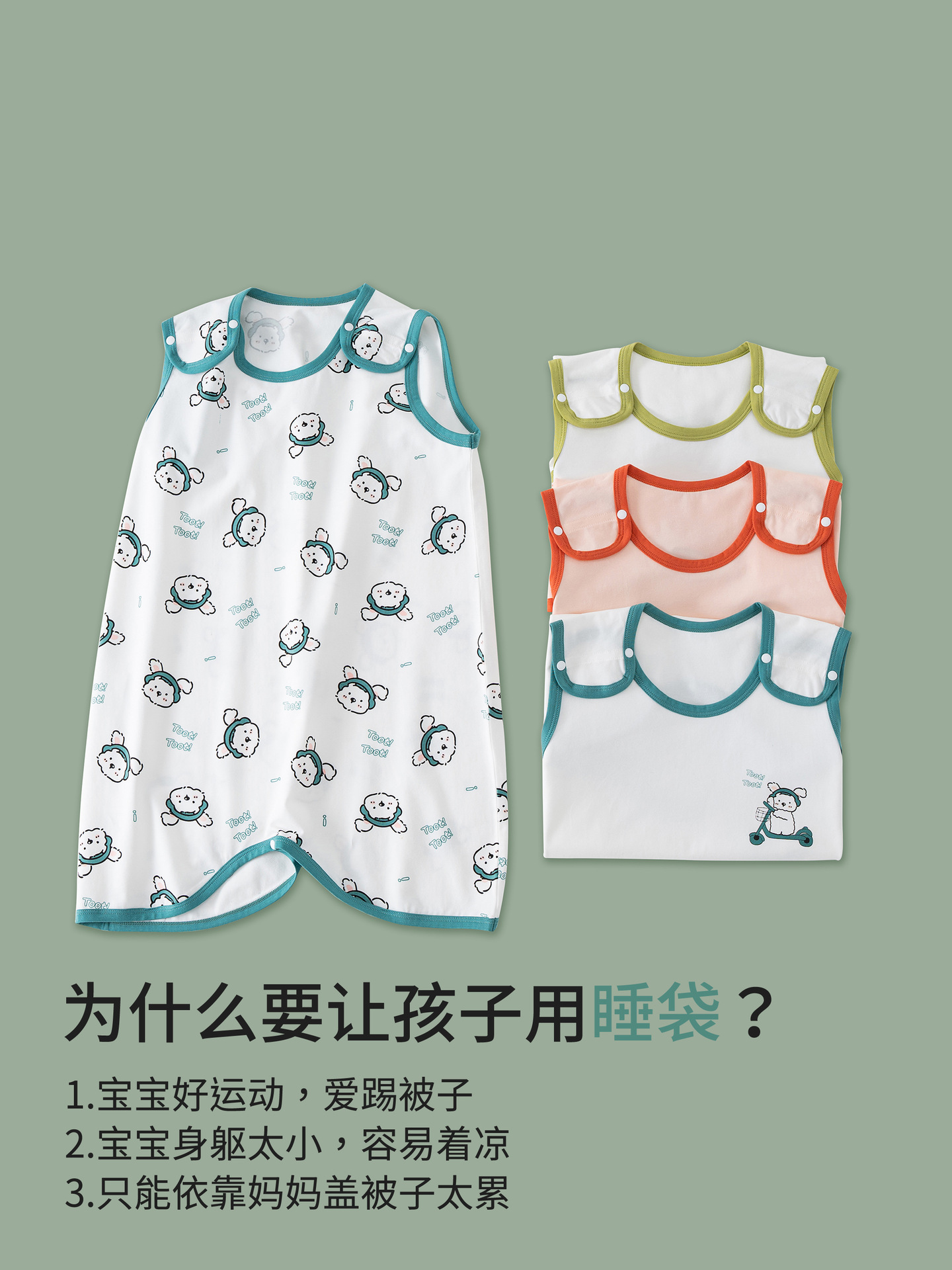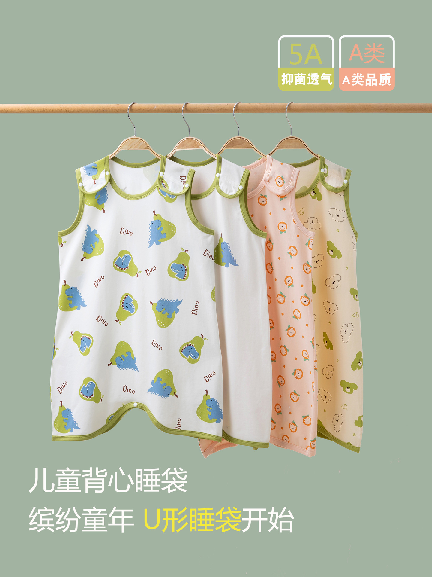 夏季薄款婴儿连体睡衣背心马甲纯棉a类抗菌卡通宝宝防踢儿童睡袋
