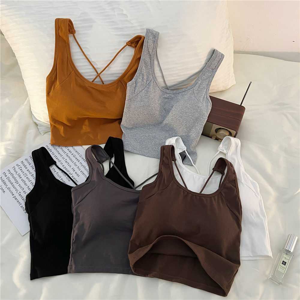 夏季美背带胸垫运动吊带背心女固定一体垫杯打底辣妹外穿百搭裹胸