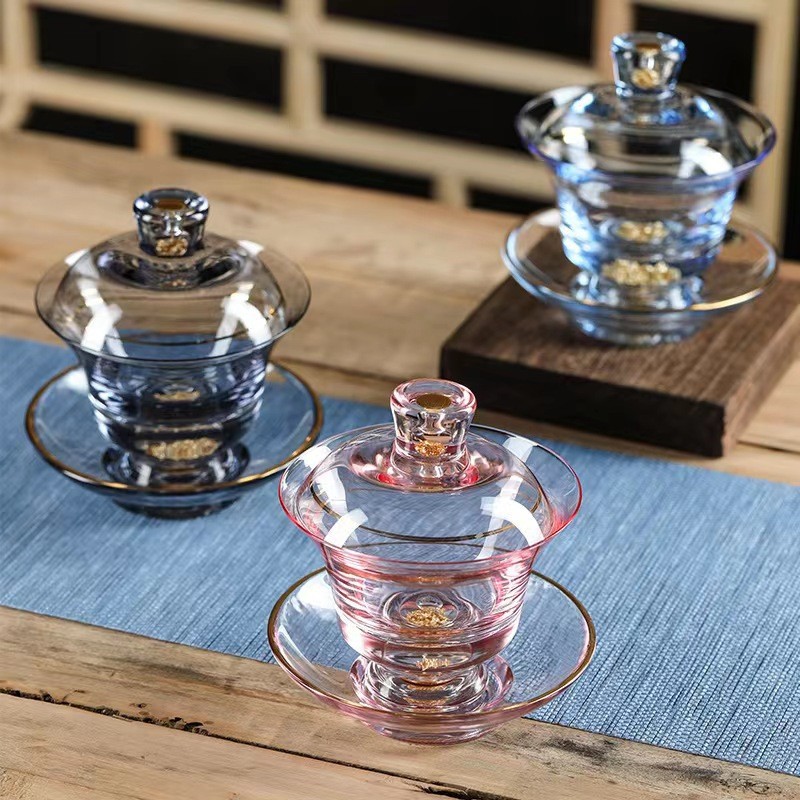 中式手工轻奢盖碗金箔公道杯子玻璃品茗杯功夫茶具礼品主人杯