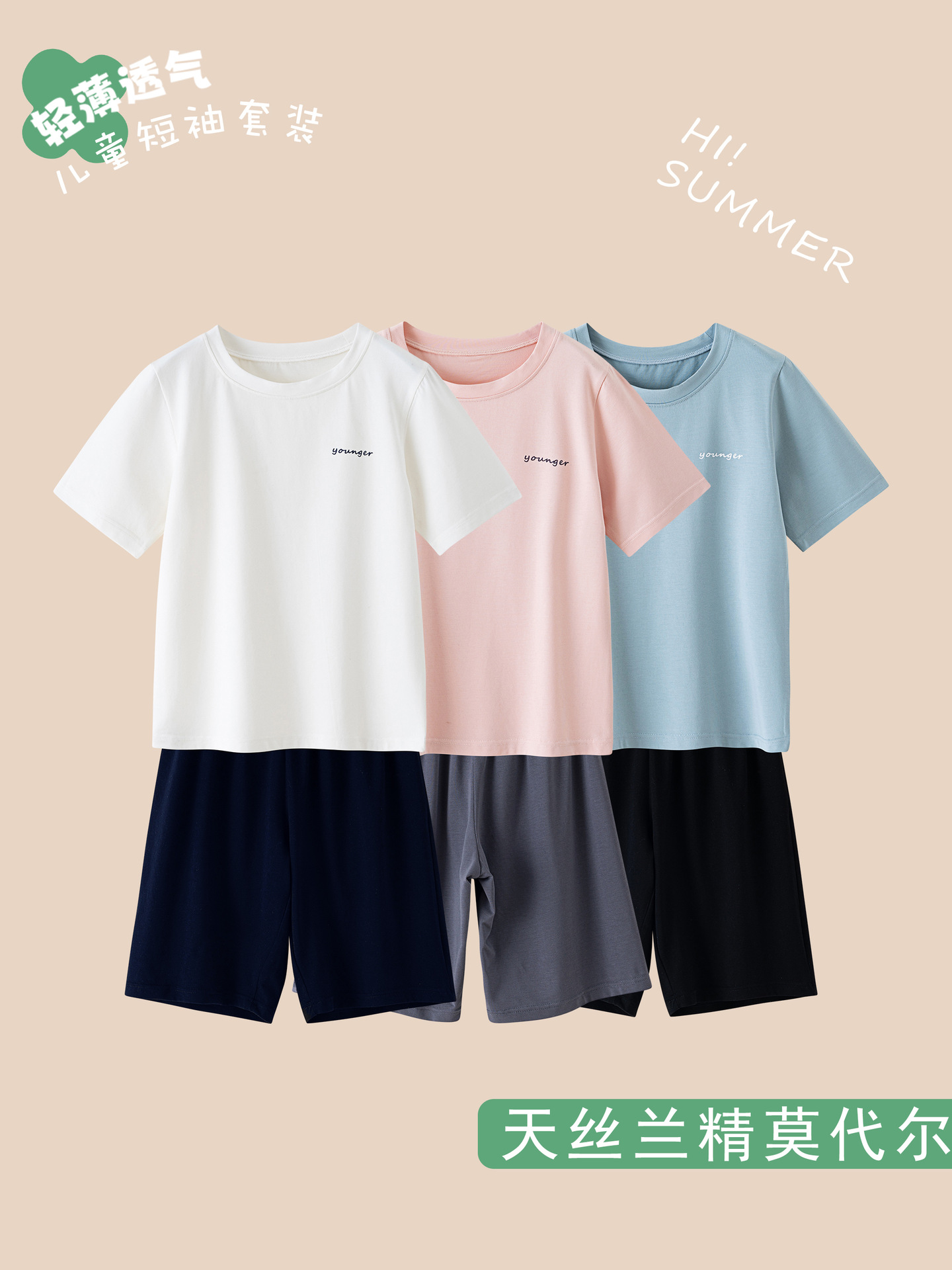 短袖套装夏季薄款男童莫尔代家居服可外穿a类中小童儿童睡衣