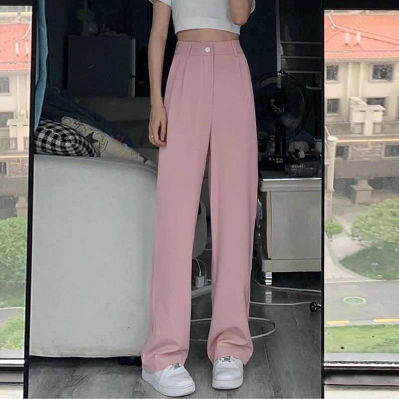 粉色拖地休闲裤女夏季新款高腰直筒阔腿宽松垂感长裤西装裤子