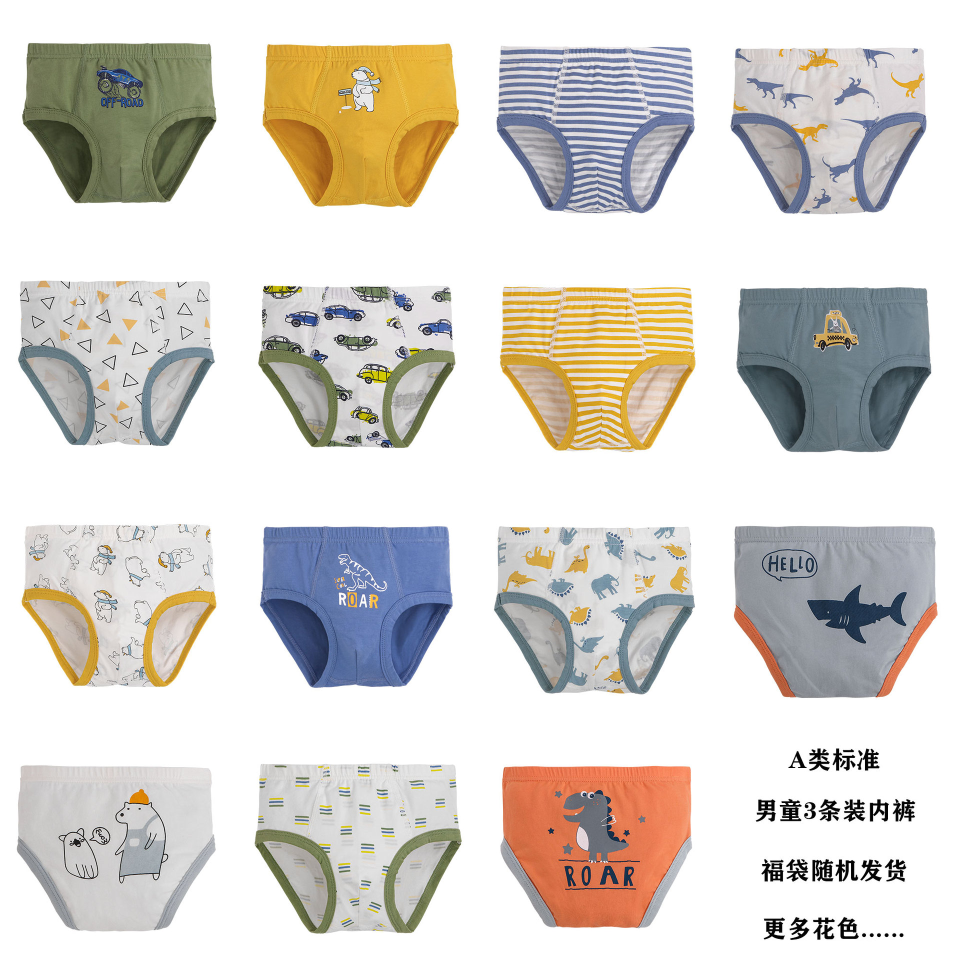 随机福袋A类男童内裤中小童宝宝纯棉三条装三角裤不夹屁屁盲盒
